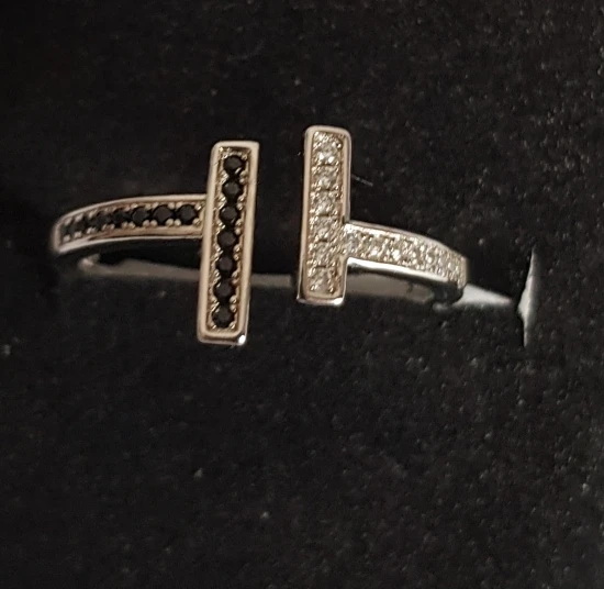 Женское кольцо из серебра 2020 пробы с черным и белым камнем