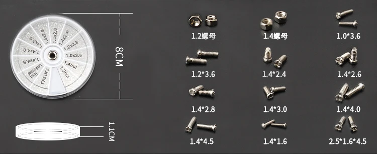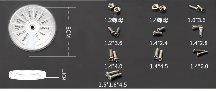 Доступно 12 видов небольших винтов и гаек в ассортименте, M1 M1.2 M1.4 M1.6.