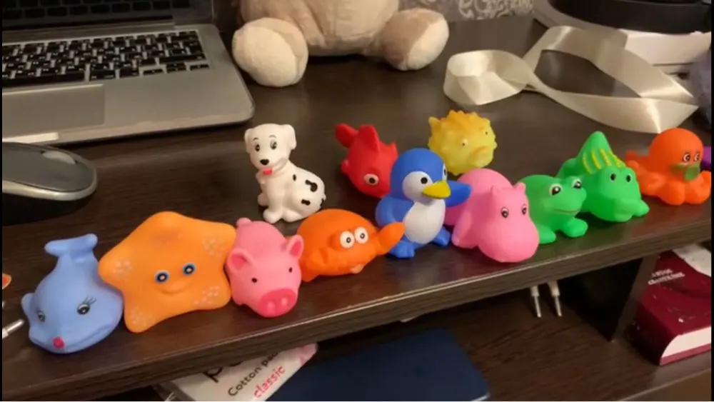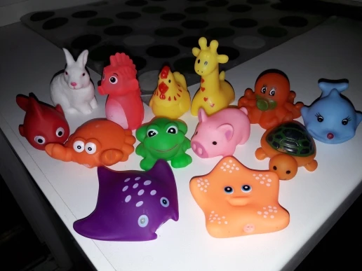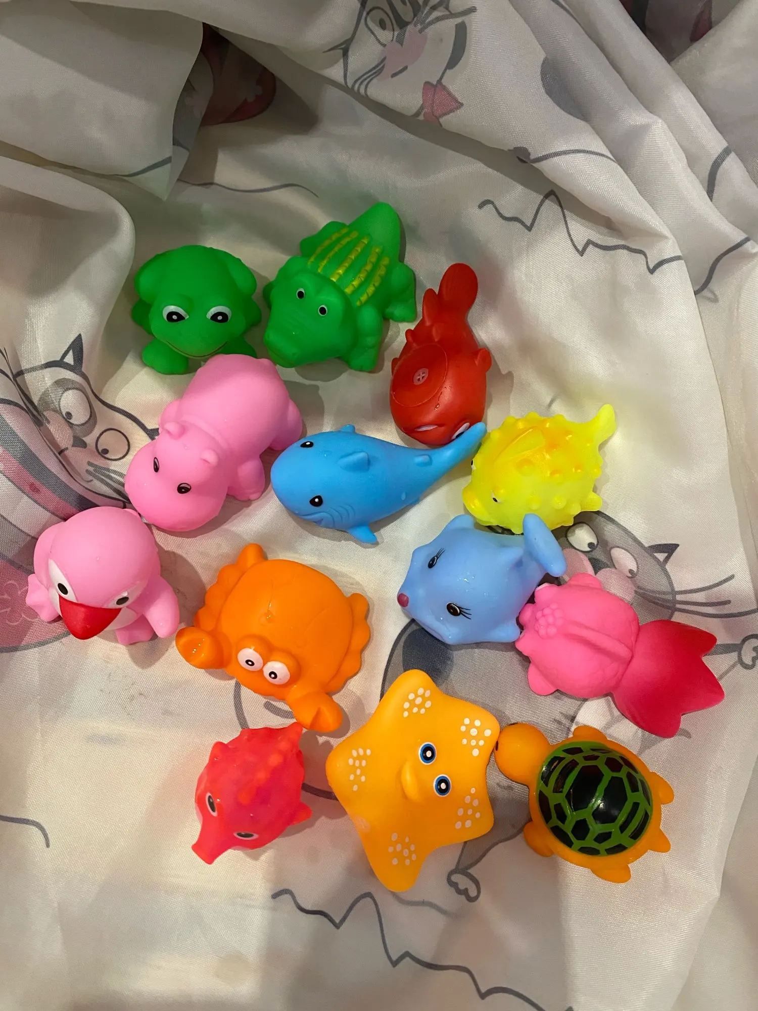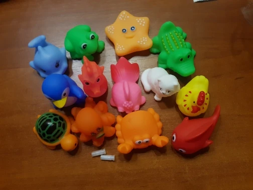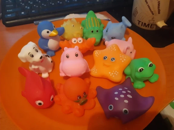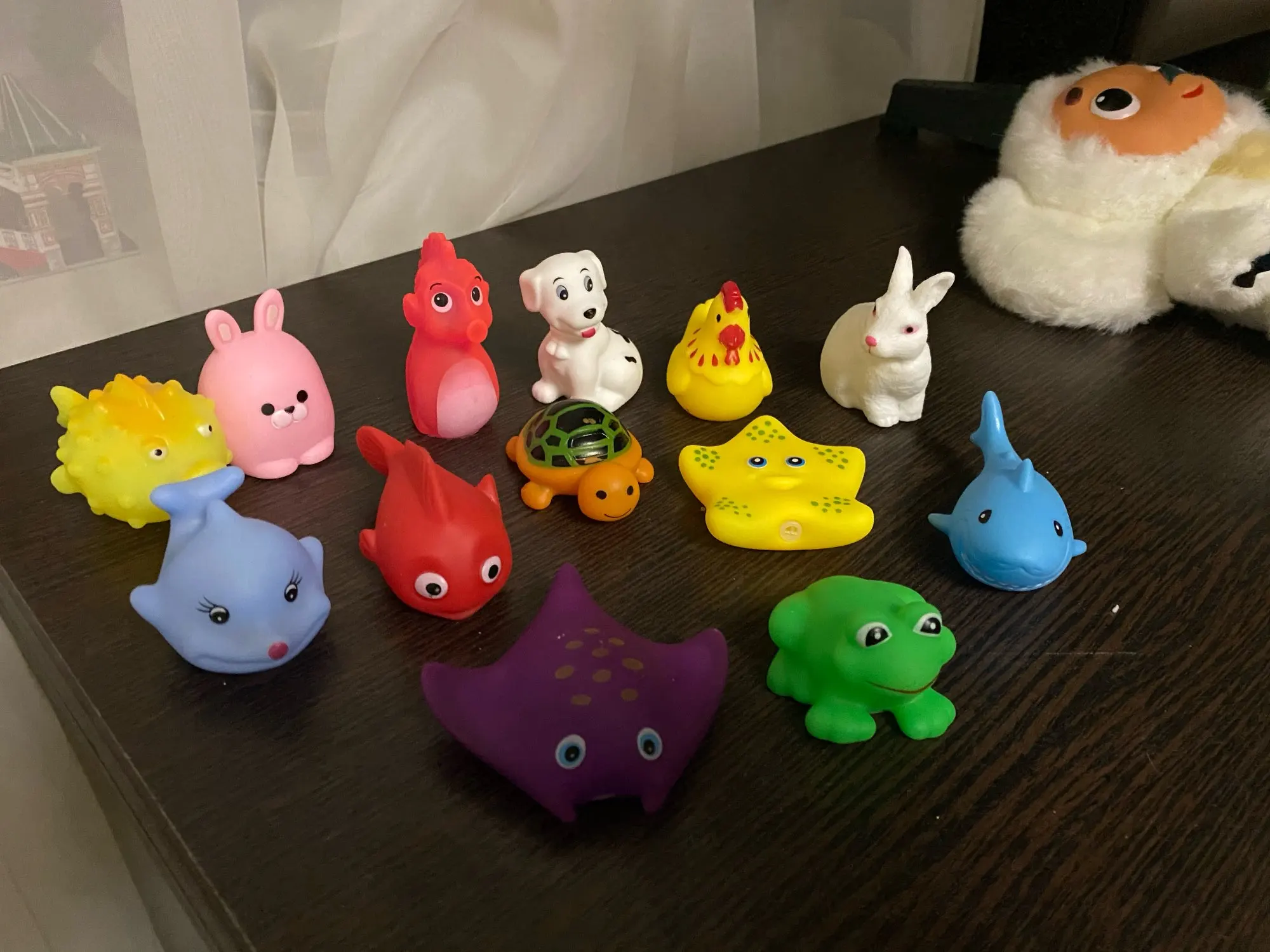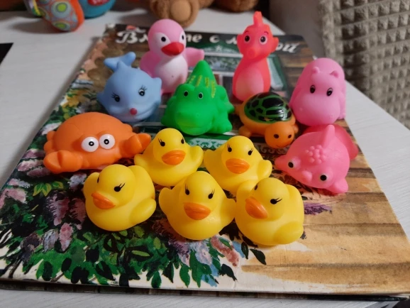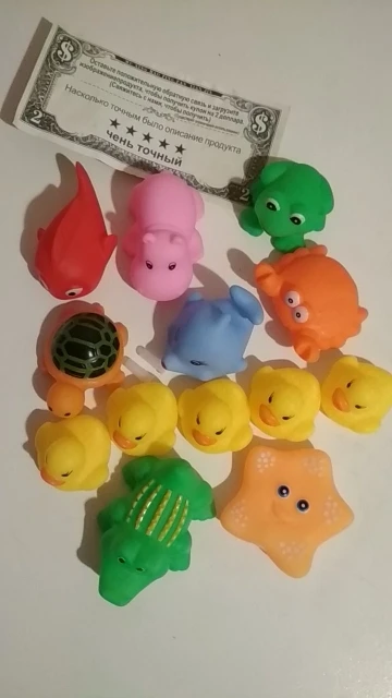 Красивые игрушки для ванной! Точная работа. Они пищат при нажатии. Открытие! Я очень рекомендую! Я бы хотел купить что-то еще в вашем магазине.