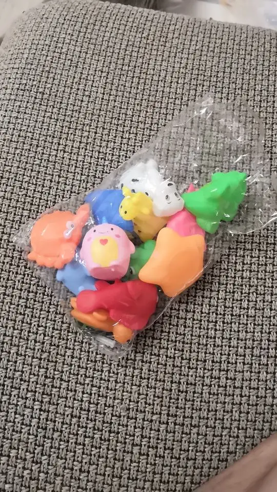 хорошие зверюшки.8 разных зверей и 5 уточек. без запоха . все пищат. мягкие и очень яркие . заказ ишол месяц. продавец положил в подарок наклейки очень приятно спасибо .