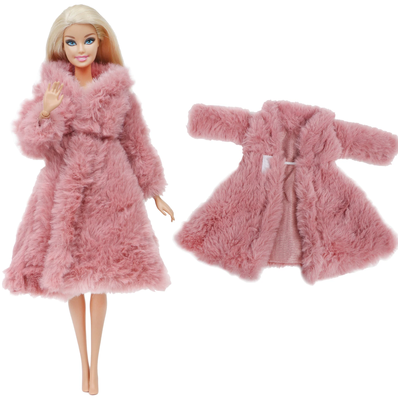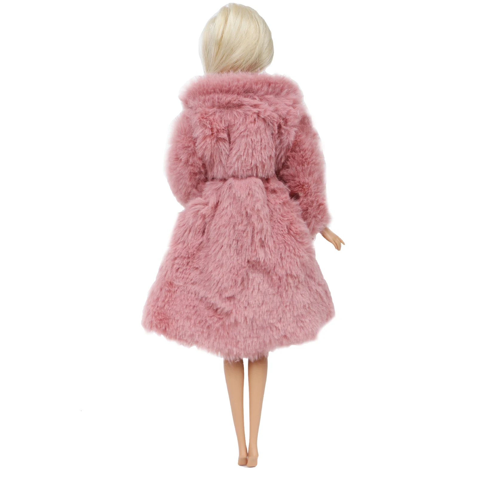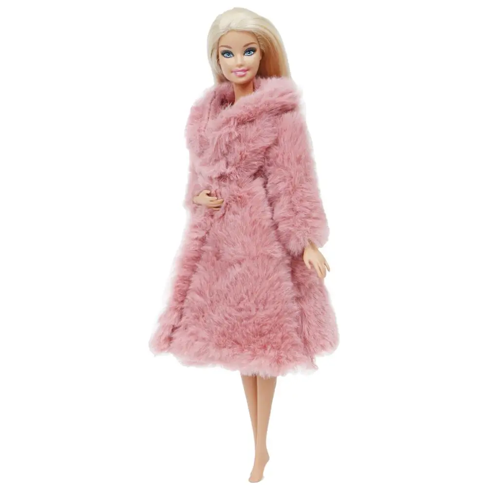 1 комплект, мягкая шуба с длинным рукавом темно-розового цвета, платье, зимняя теплая повседневная одежда, аксессуары, одежда для куклы Барби, детская игрушка