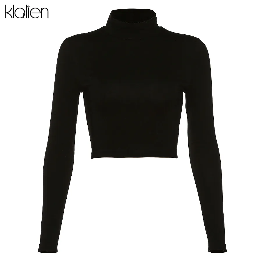 Женский уличный топ с открытой спиной kalien, облегающий укороченный топ-водолазка с длинным рукавом, весна 2020