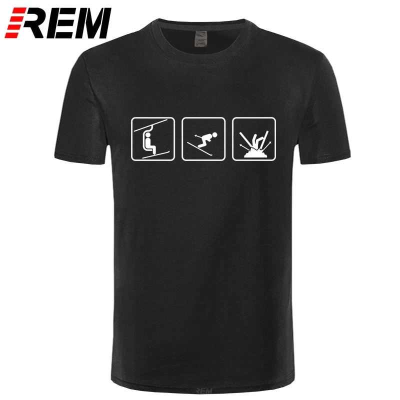Мужская хлопковая футболка Evolution Skier, забавная Повседневная футболка с коротким рукавом, уличная одежда