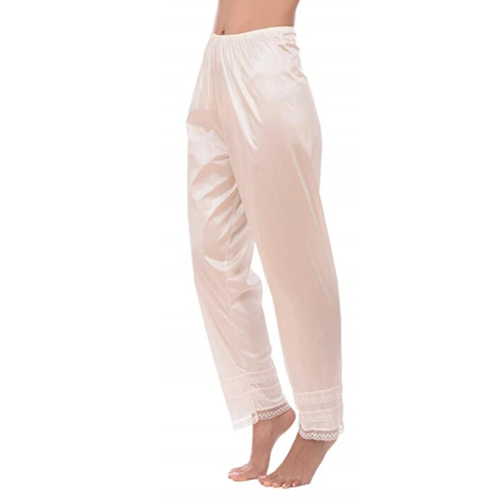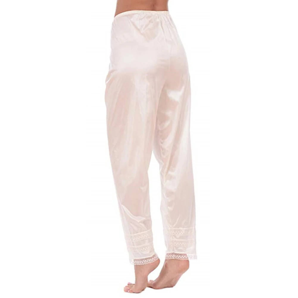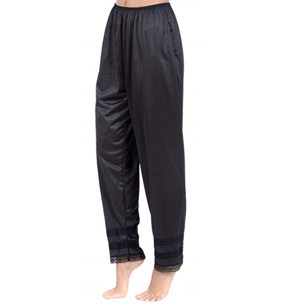 Женские пижамные штаны с широкими штанинами, повседневные штаны для отдыха, сатиновые кружевные лоскутные пижамы, повседневные свободные однотонные брюки