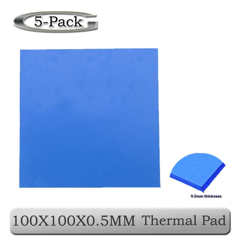 Синяя термопроводящая силиконовая прокладка Gdstime, 5 шт., толщина 10 см, 100 мм x 100 мм x 0,5 мм, 0,05 см