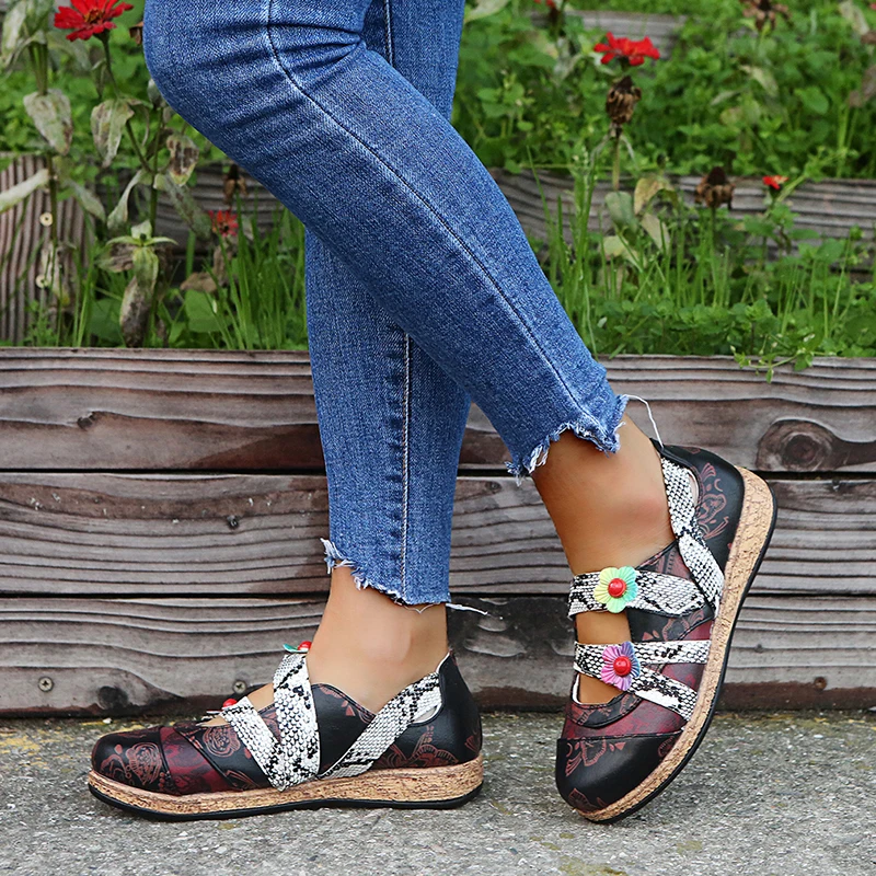 Женские винтажные туфли из натуральной кожи, с цветными вставками, на липучке, повседневные туфли на плоской подошве, весна-лето