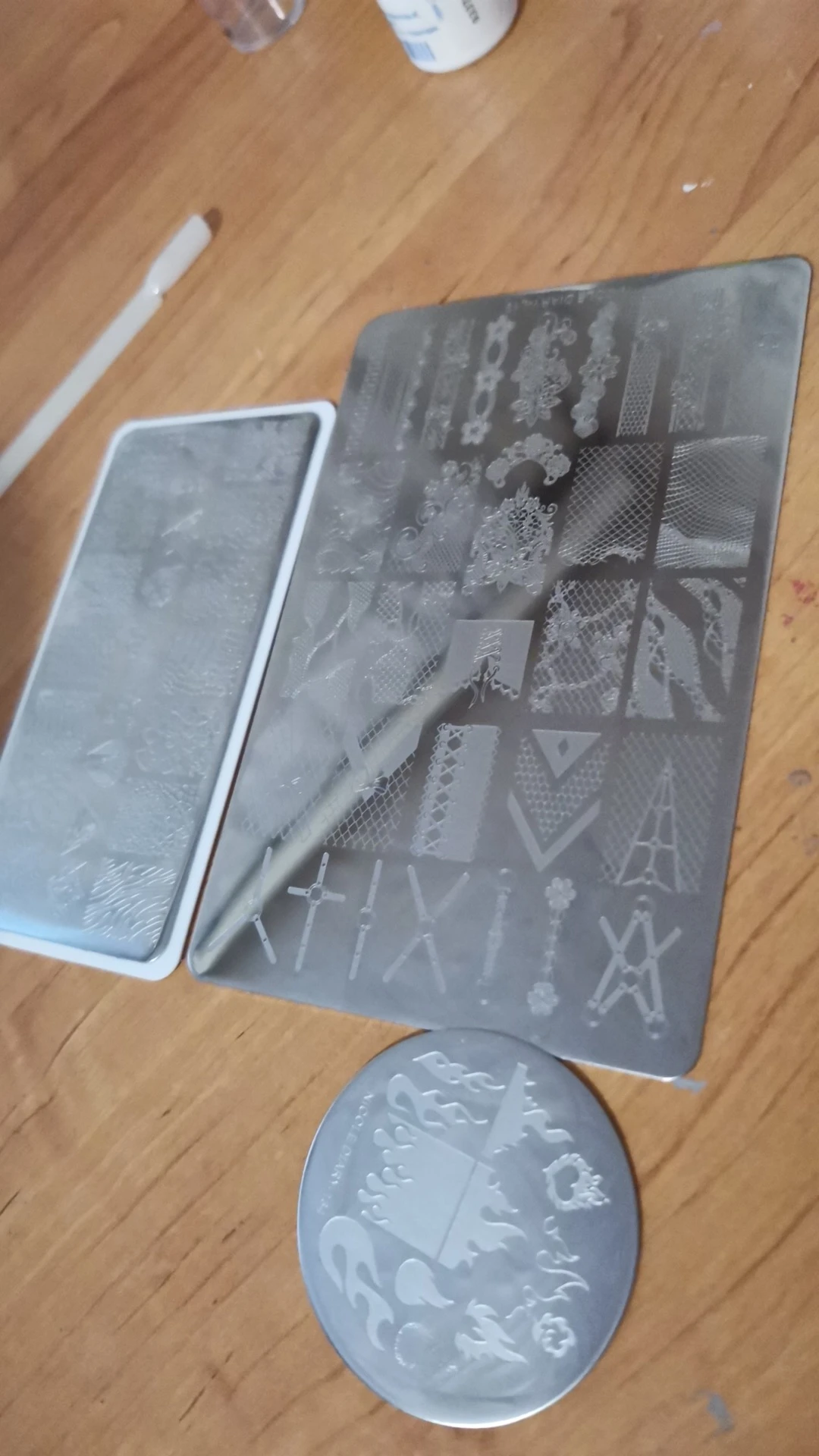 Как оказалось, пластина дрянь, порезала об нее пальцы на обеих руках. Пластина пришла гнутая, так как была объединена с другими посылками. Пластину распрямила как могла. Как ни пробовала, переносятся не все рисунки. Я так хотела эти рисунки и в итоге пластина улетела в мусор