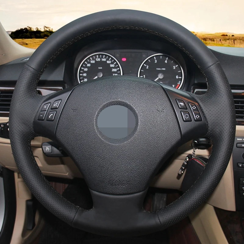 Черный чехол рулевого колеса автомобиля из искусственной кожи для ручного шитья, для BMW 320d 325i 335i X1 E84 E90 E91(Touring), автомобильные аксессуары