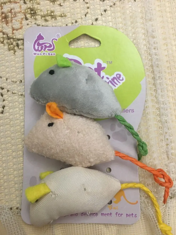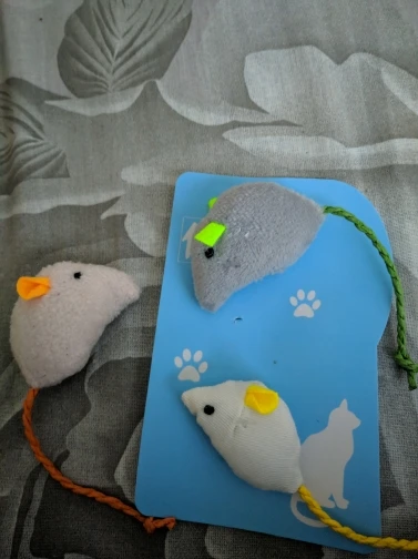 отличные мышки! в комплекте их три штуки, все коты с удовольствием играют ими. изначально мышки с каким-то запахом и коты их вылизывают и валяются, потом уже играют ими как обычными игрушками . доставка была быстрой, так как консолидировалась с другими посылками