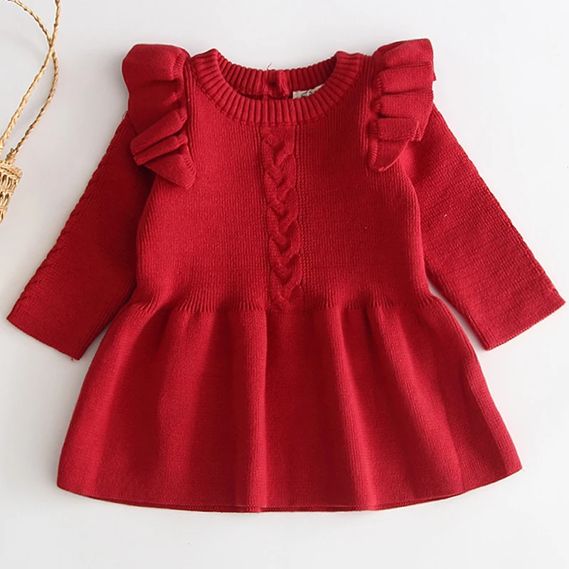 Вязаное платье для девочек, рождественское платье, осенне-зимний свитер для девочек, топы для вечеринок, рубашки, Детская Хлопковая одежда принцессы