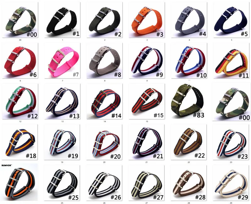 Материал: нейлон, Пряжка из нержавеющей стали Длина: около 265 мм Размер: 18,20.22,24 мм Цвет: черный, синий, коричневый, желтый, зеленый, серый, розовый, красный, оранжевый (как на фото) Толщина: 1,2Прибл. Мм