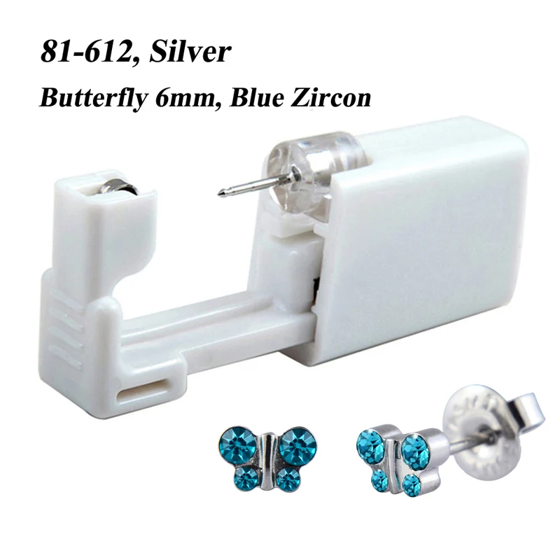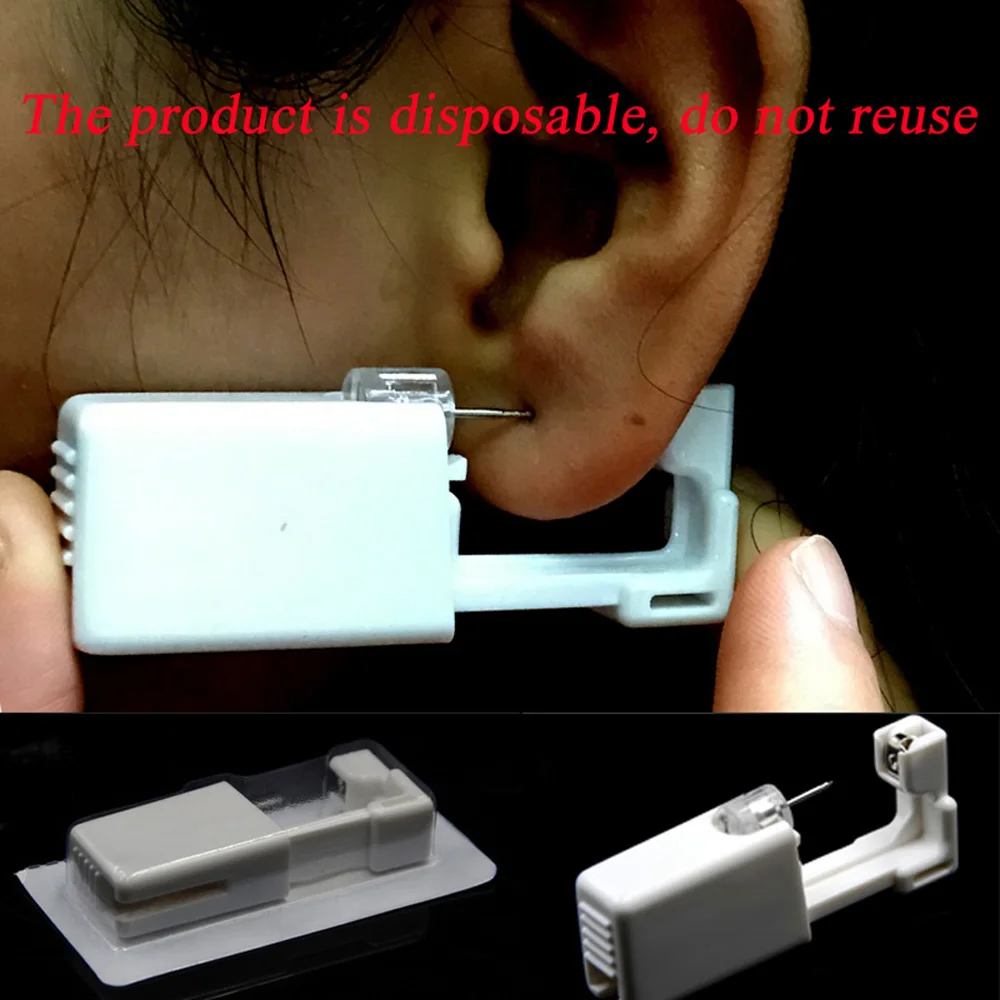 Каждое устройство сочетает в себе саморазрушающийся пистолет для прокалывания ушей со встроенной шпилькой.