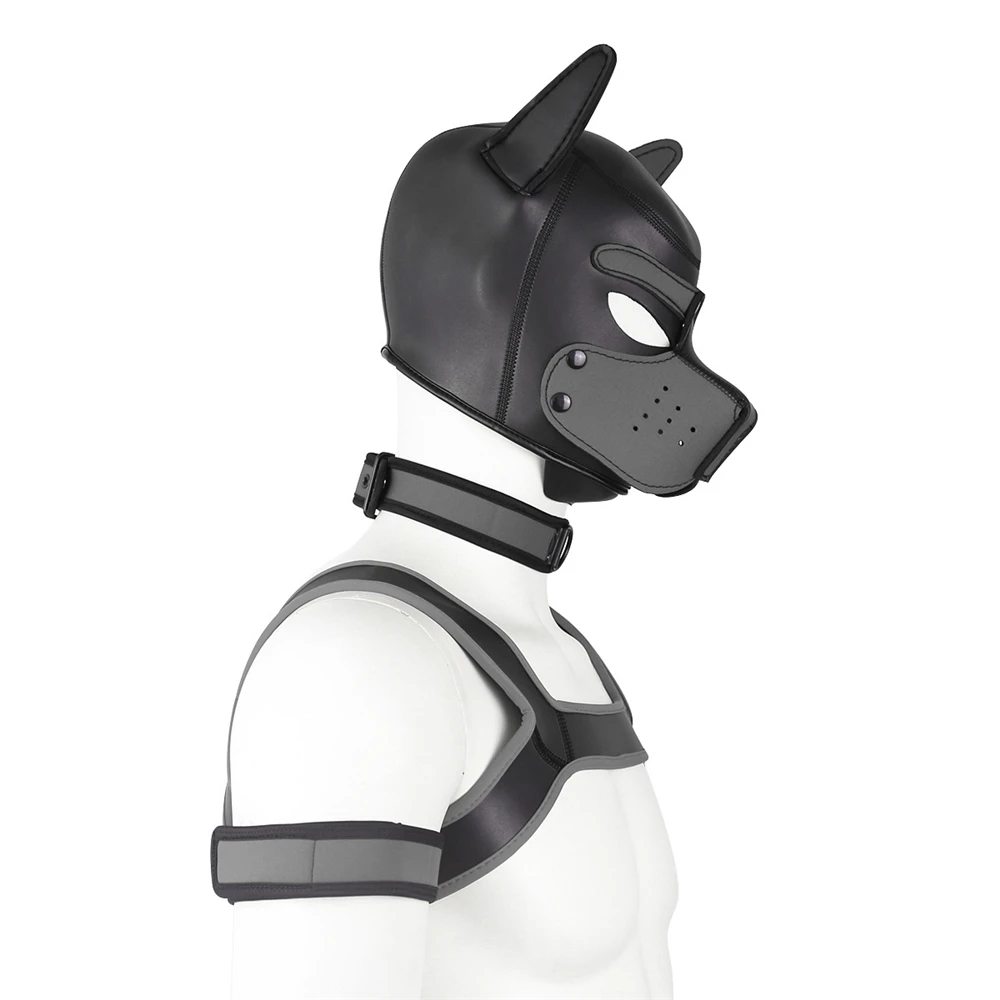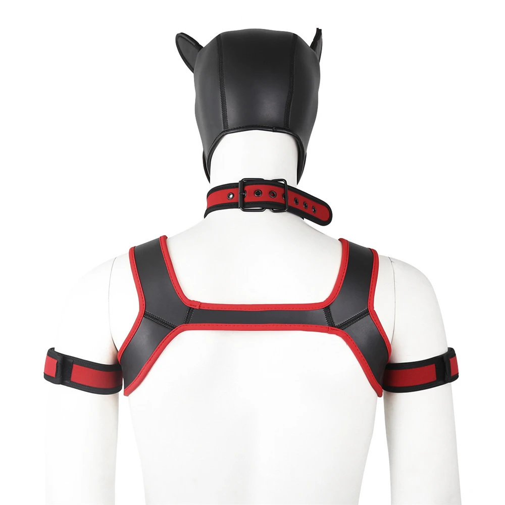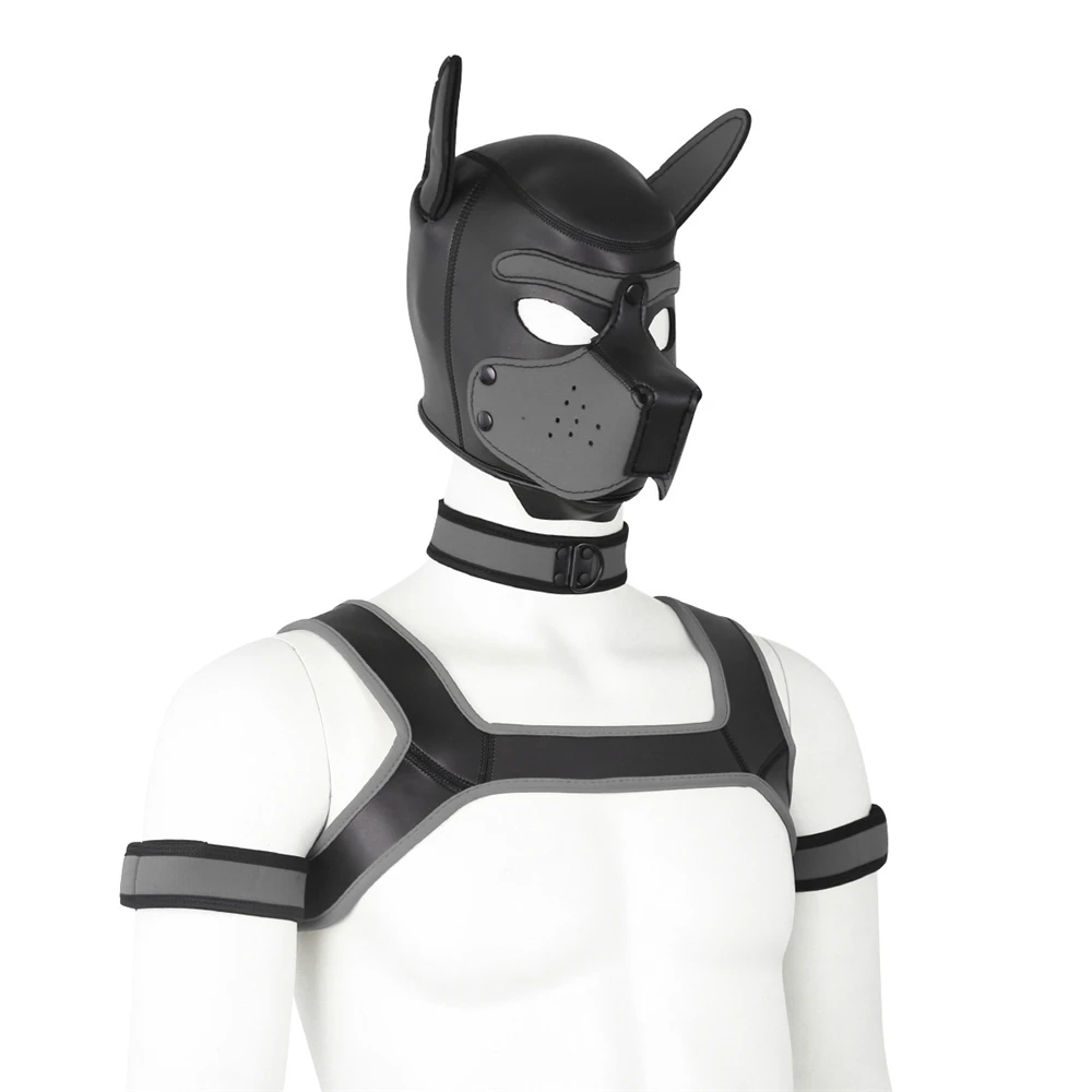 Мужской костюм для танцев, маска для собак, неопреновый игровой костюм для сдержания тела, нагрудный костюм, мужской топ с ремнем, собачий капюшон, ошейник, комплект для рук