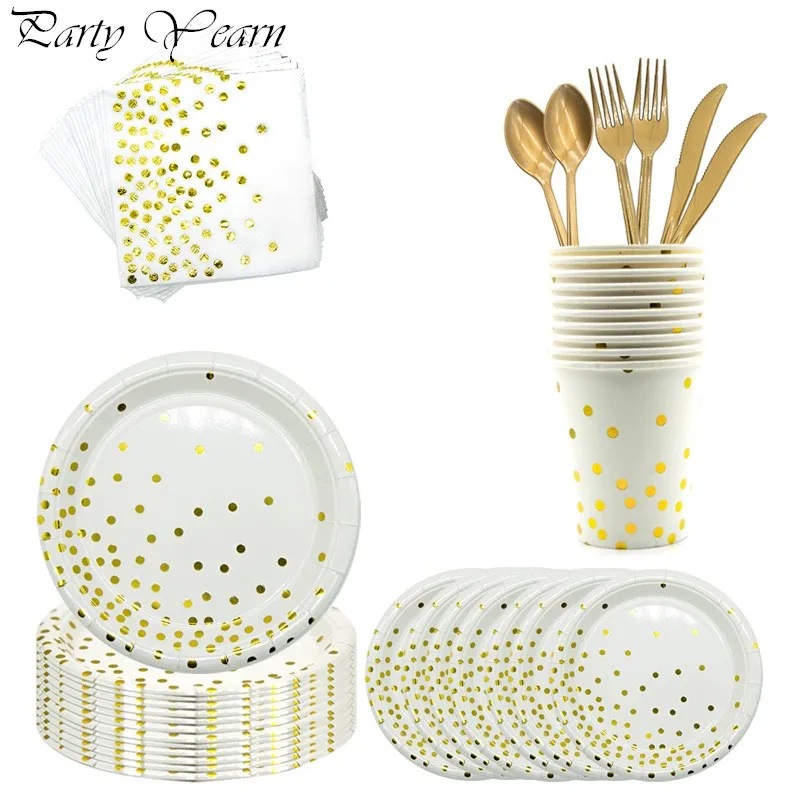 Белые спортивные шаровары в Золотой горошек бумажный стаканчик, тарелка салфетки для с днем рождения свадебное одноразовая посуда вечерние украшения свадебные принадлежности
