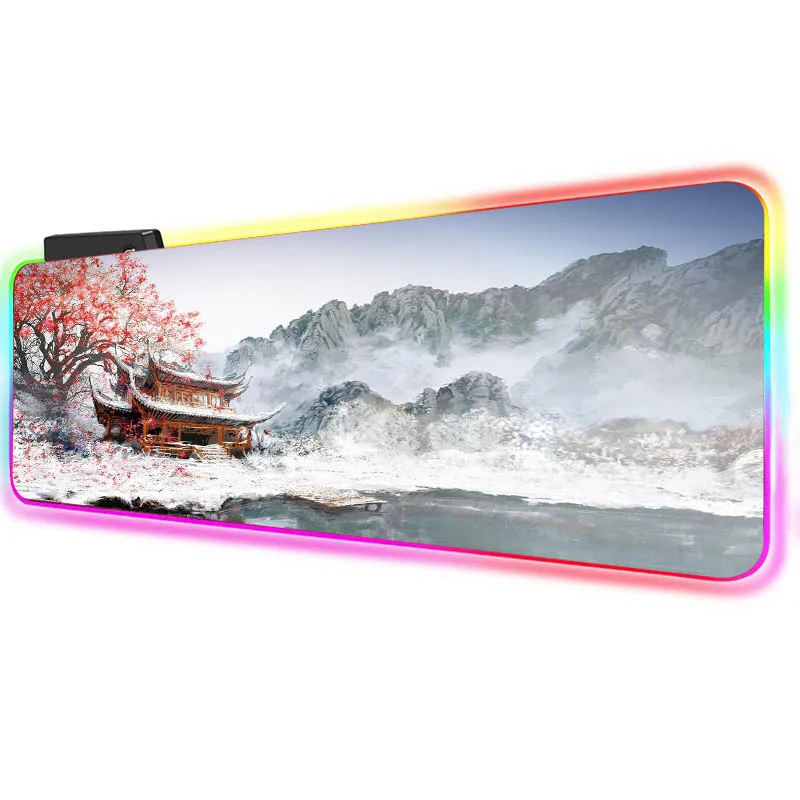 Коврик для мыши XGZ, большой игровой коврик для мыши в японском стиле с изображсветодиодный цветущей вишни, RGB подсветильник, скоростной коврик для офисной компьютерной клавиатуры