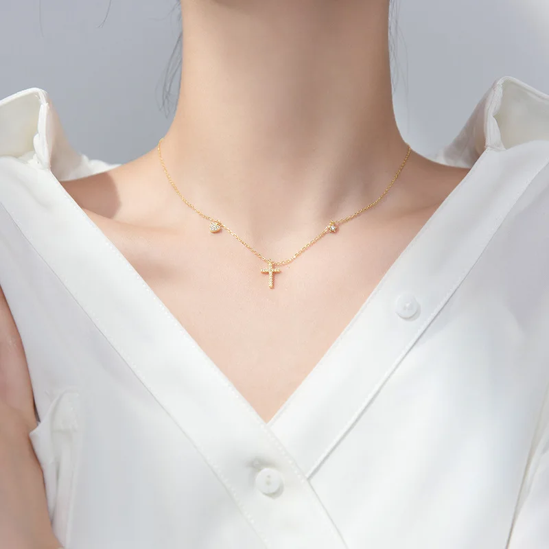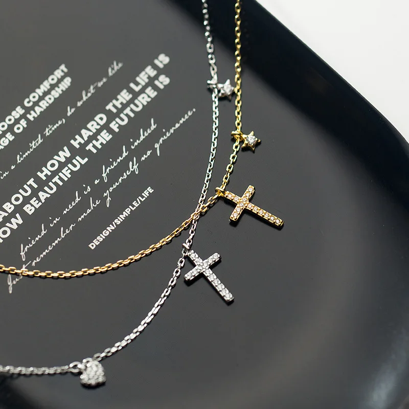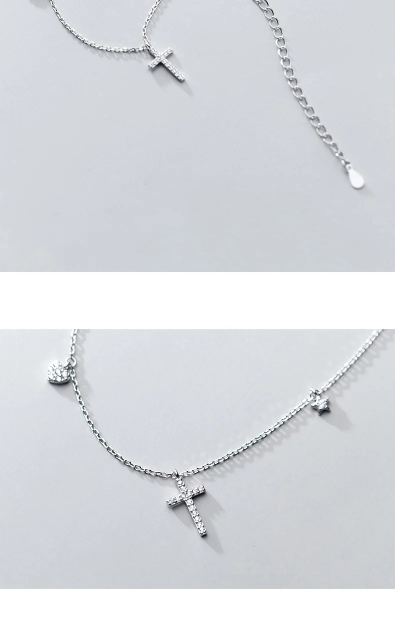 Серебро 925 пробы с крестом и звездами trustdavid, короткое ожерелье с подвеской для женщин и девушек, подарок DS2485