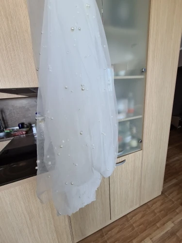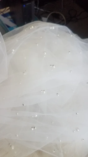 Вуаль очень красивая, и мастерство очень хорошее. На вуали много жемчужин, и они равномерно распределены, ткань очень мягкая, шелковистая, что делает движение действительно плавным и придает ему более изысканный вид. Расческа с металлической отделкой также является бонусом. Единственный выбор для меня в том, что цвет выглядит больше как светло-персиковый, чем цвет шампанского. Кроме этого, это отличная вуаль, и я настоятельно рекомендую ее. Доставка была быстрой, она прибыла в течение 2 недель.
