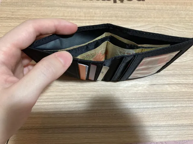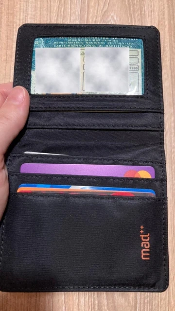 Хороший кошелек. Не идеально, но хорошо. Он немного меньше стандартного размера в моей стране (Бразилия), поэтому я не могу полностью заменить свой предыдущий кошелек для этого. Он может охранять наличные и кредитные карты, но не банковский чек и бразильский ID.