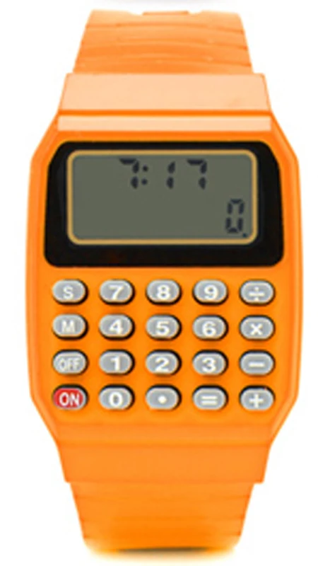 Часы с калькулятором-это может сделать работу сложения, вычитания, умножения, деления.