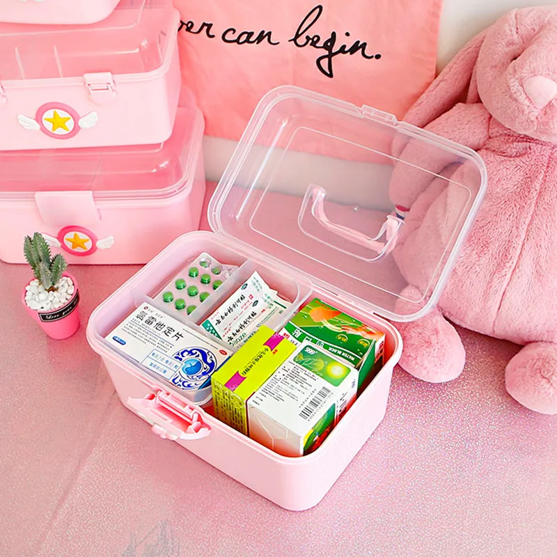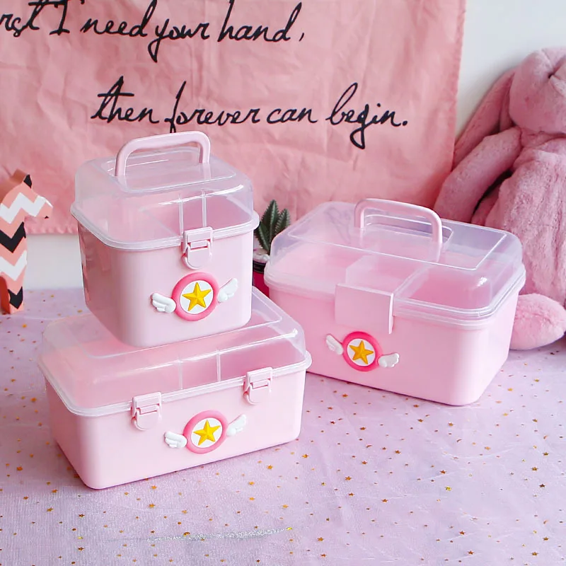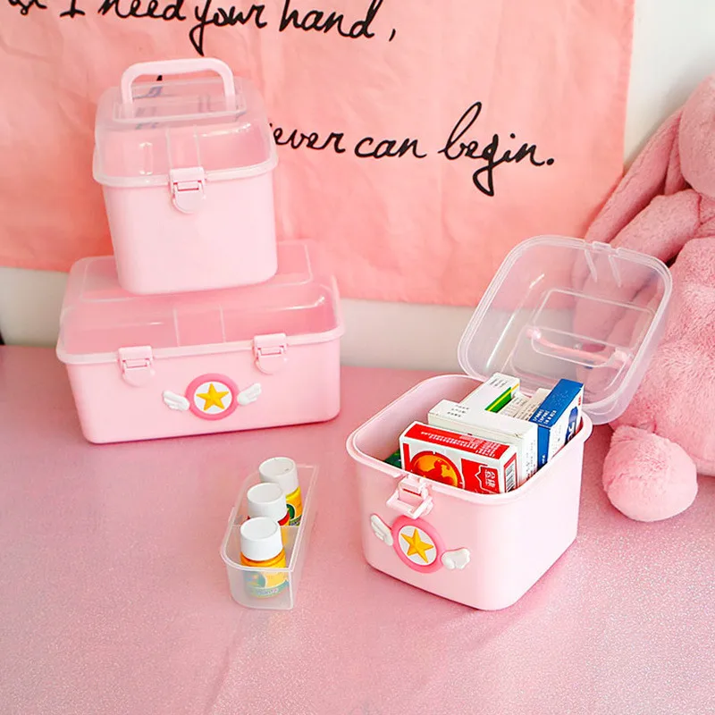 Популярная детская аптечка, фигурка Сакура, семейные Чехлы для таблеток, пластиковый многослойный медицинский ящик для хранения, портативный аптечка