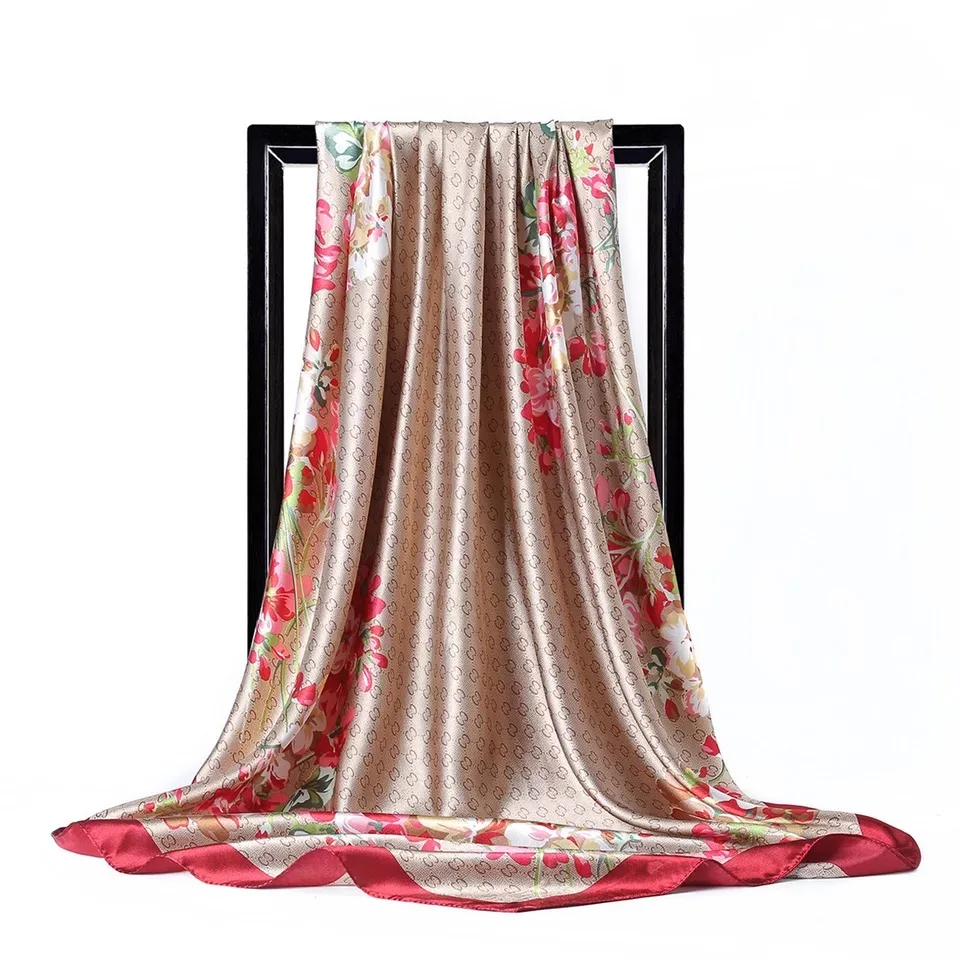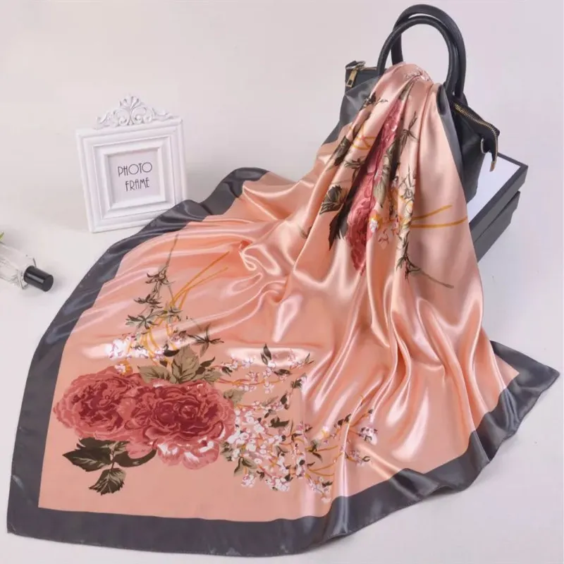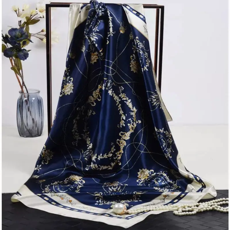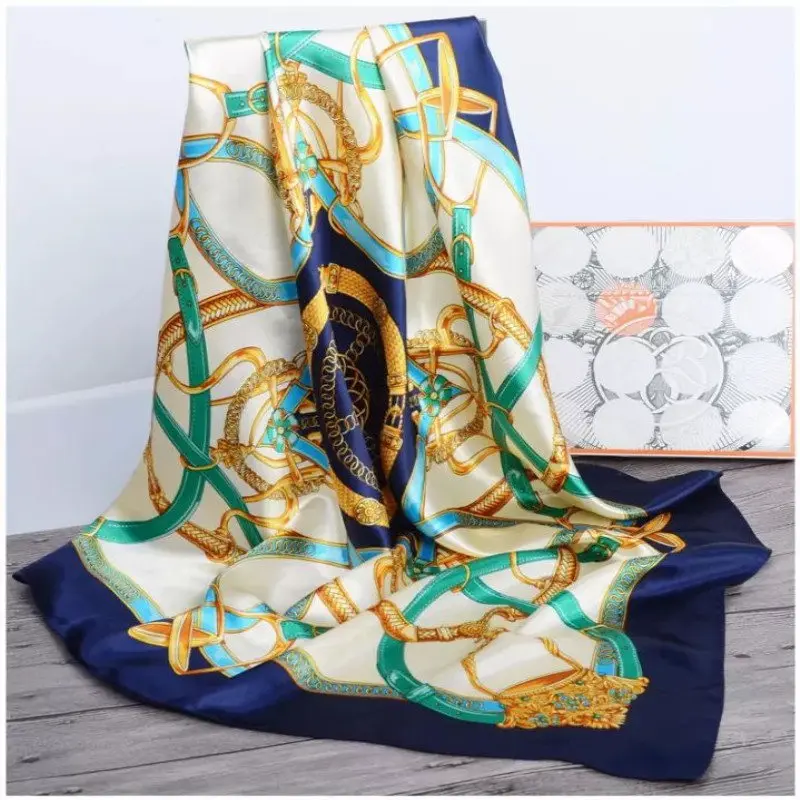 Женский шелковый шарф с квадратной головкой, роскошный брендовый сатиновый шарф-пачка, размеры 90*90, цвет евро-зеленый