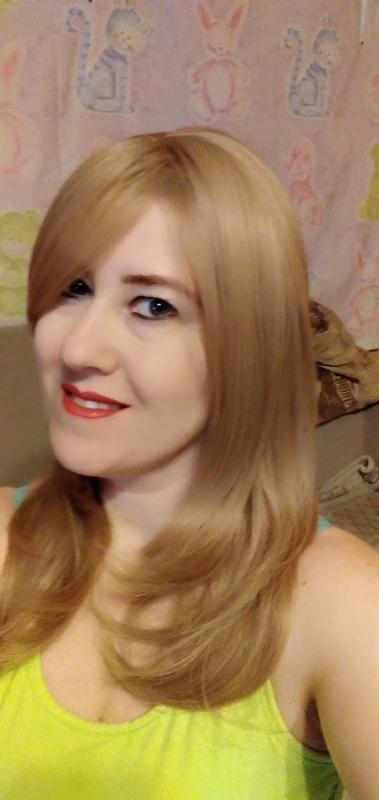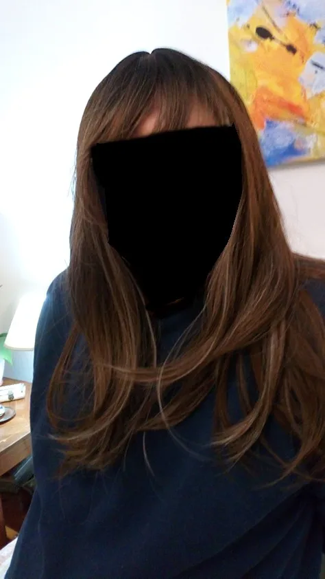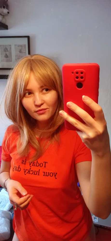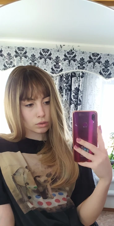Он просто фантастичный! Оттенок очень естественный. Словно мои собственные крашеные волосы. Стрижка практически как у меня - ровная, с длинной челкой. Своих волос под таким париком не видно. И в целом все сделано аккуратно, пробор не отличить от настоящего. Волосы синтетические, но блеск как у обычных волос. Сами волосы немного плотнее, чем мои. Как у девушек с крепкими волосами (всегда им завидовала). Волосы немного магнитятся, как и обычные, но при аккуратном обращении не путаются.
