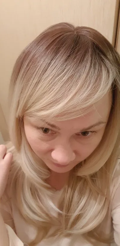 Доставка 3 недели. Парик был аккуратно упакован. Запаха при распаковке не было. Эта модель с прямой челкой. Корни темные. Есть светлые прядки. Волосы достаточной густоты, но не выглядят излишне объемными. Путаются не сильно. Легко расчесываются. Практически не выпадают. Качество парика меня порадовало. Внутри есть крючки для лучшей фиксации. Сеточка была в комплекте. Отличный парик. Однозначно стоит своих денег. Выглядит очень реалистично.