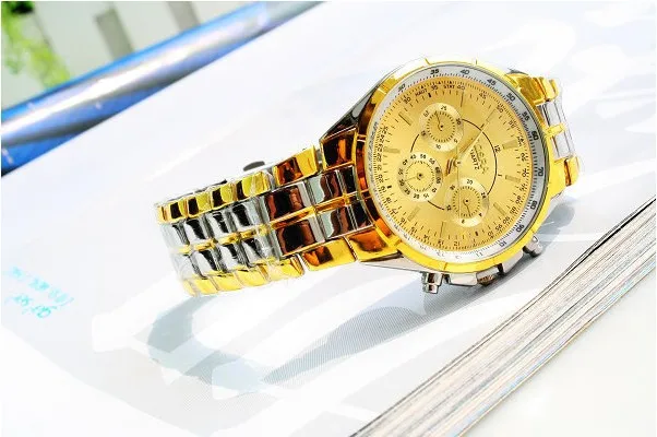 Мужские кварцевые часы с покрытием из 18-каратного золота, полность...