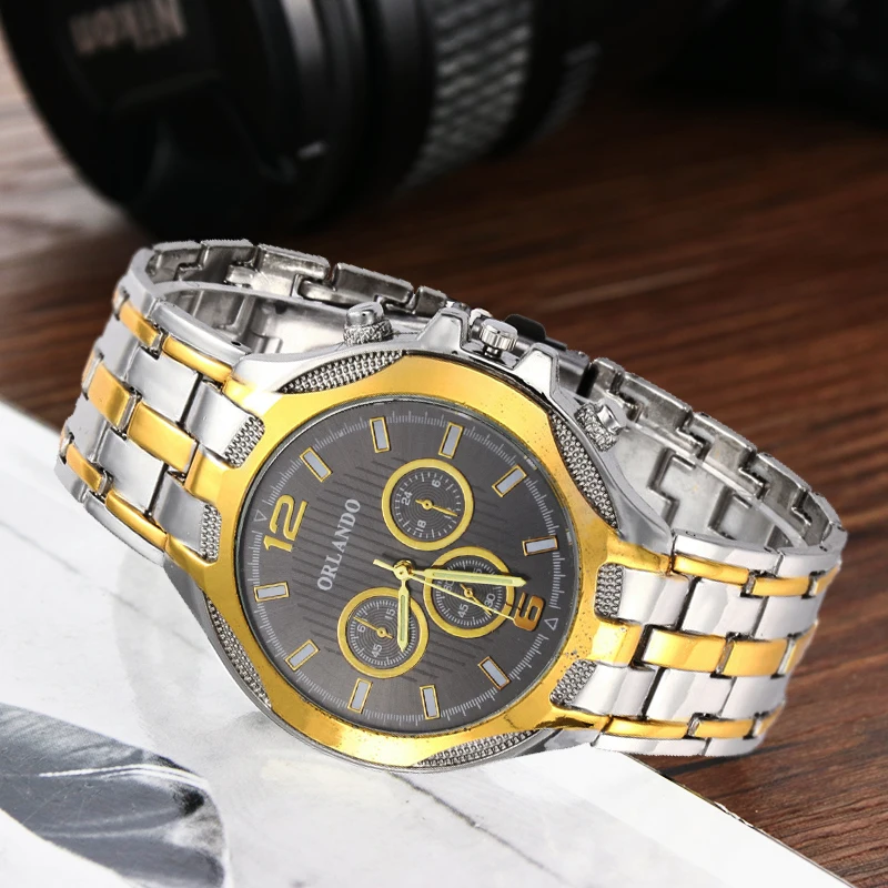 Часы наручные Orlando Мужские кварцевые, роскошные модные, с браслетом из нержавеющей стали