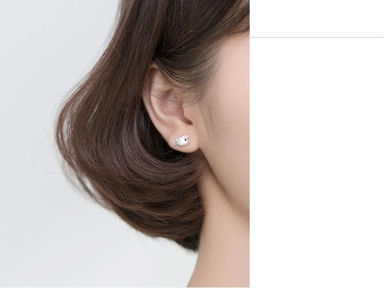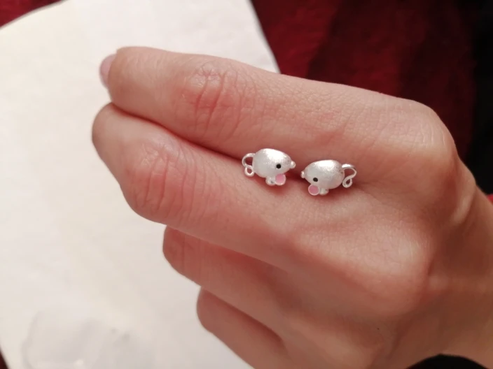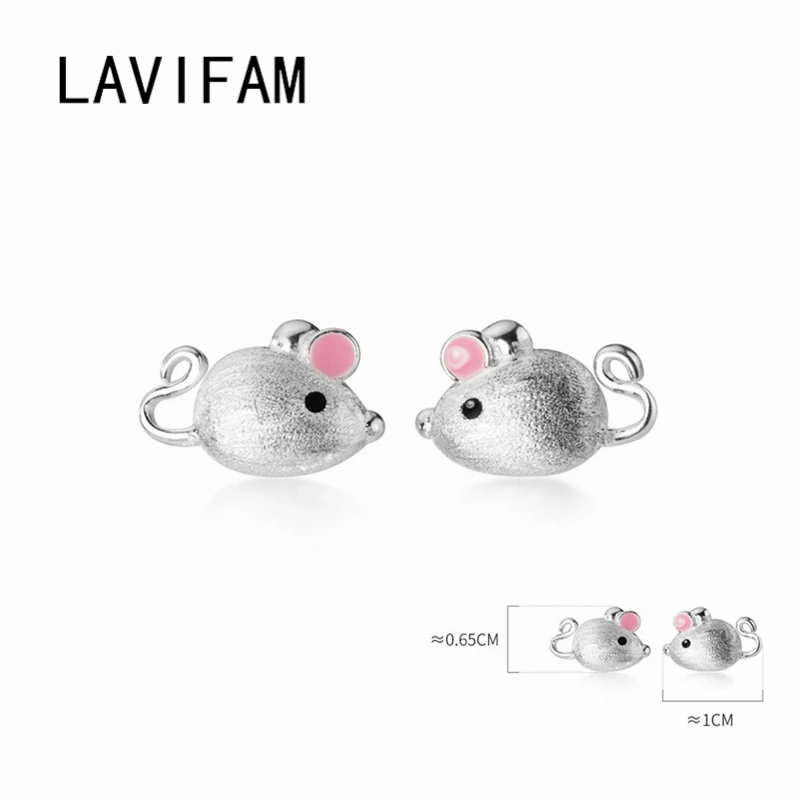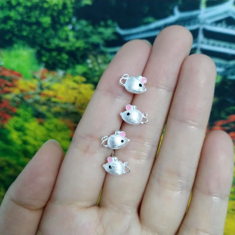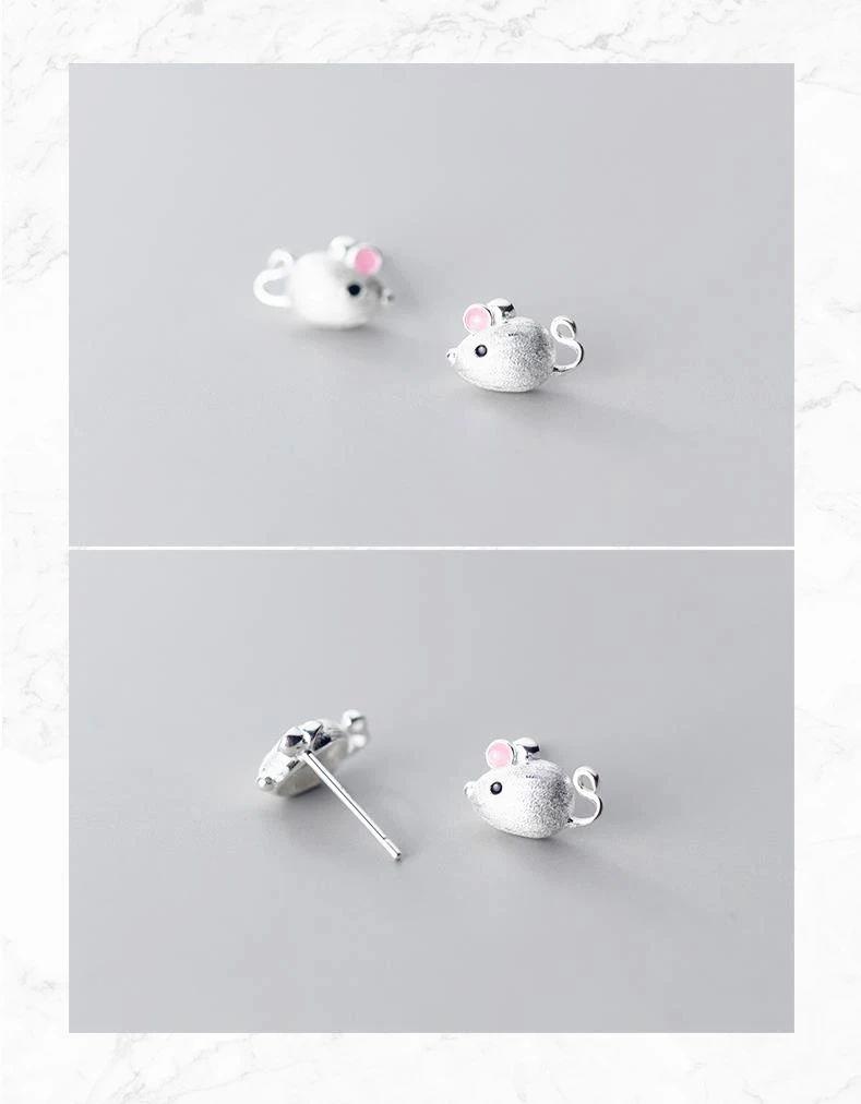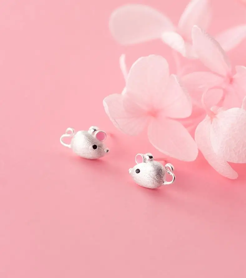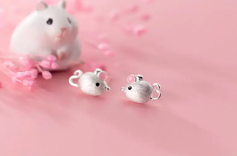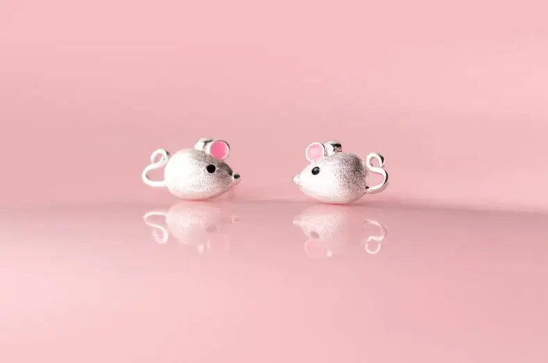 Серьги-гвоздики из стерлингового серебра 925 пробы симметричные розовые маленькие в форме мыши и крысы, подарок для девочек и малышей, китайский ювелирные изделия со знаками Зодиака
