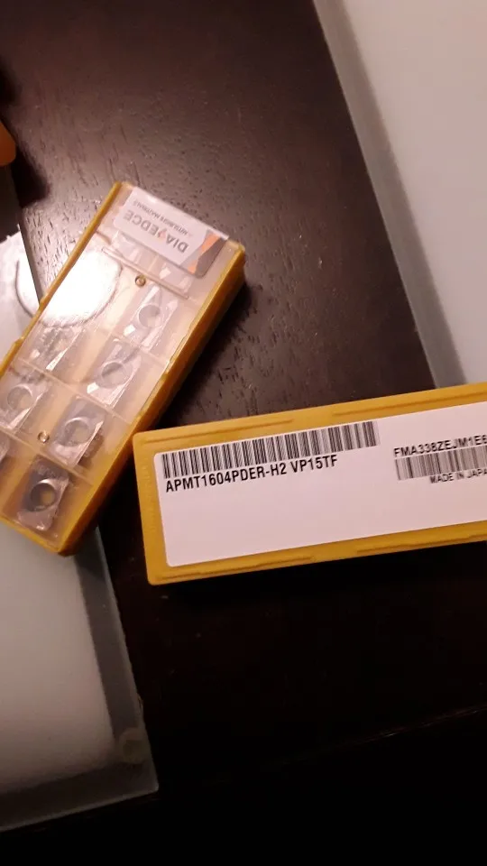Продавец отправил сразу же, а также доставка была быстрой. Вставки, которые я получил, не повреждены, запечатаны этикеткой, на которой написаны материалы Diaedge Mitsubishi, необычная вещь в том, что на задней стороне не сообщается информация о параметрах резки Vc Ap Fz, укажите, какие материалы вы можете использовать. Я запросил объяснения продавцу, и единственный ответ, который я дал, был: это сталь Я снова спрашивал характерные параметры, но мои сообщения были игнорированы. Отношение продавца вызывает много беспокойства о том, что вставки, вероятно, не являются оригинальным брендом, для которого есть spacciati. Как только у меня появится мода, попробуйте их, я добавлю больше деталей