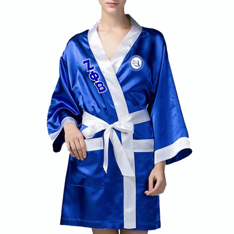 Халат ZPB с греческими буквами на заказ, белая и синяя одежда для сна, шелковая ночная рубашка с коротким рукавом, атласный Халат