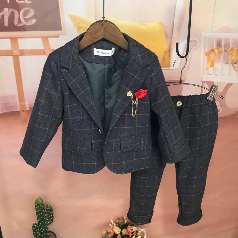 Детский костюм для мальчиков костюм в Корейском стиле детская одежда модное пальто штаны, детская одежда из двух предметов для маленьких мальчиков