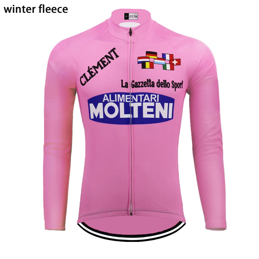 Розовая велосипедная Джерси MOLTENI с длинным рукавом, зимняя флисовая и без флиса, Мужская одежда для велоспорта mtb, 5 стилей