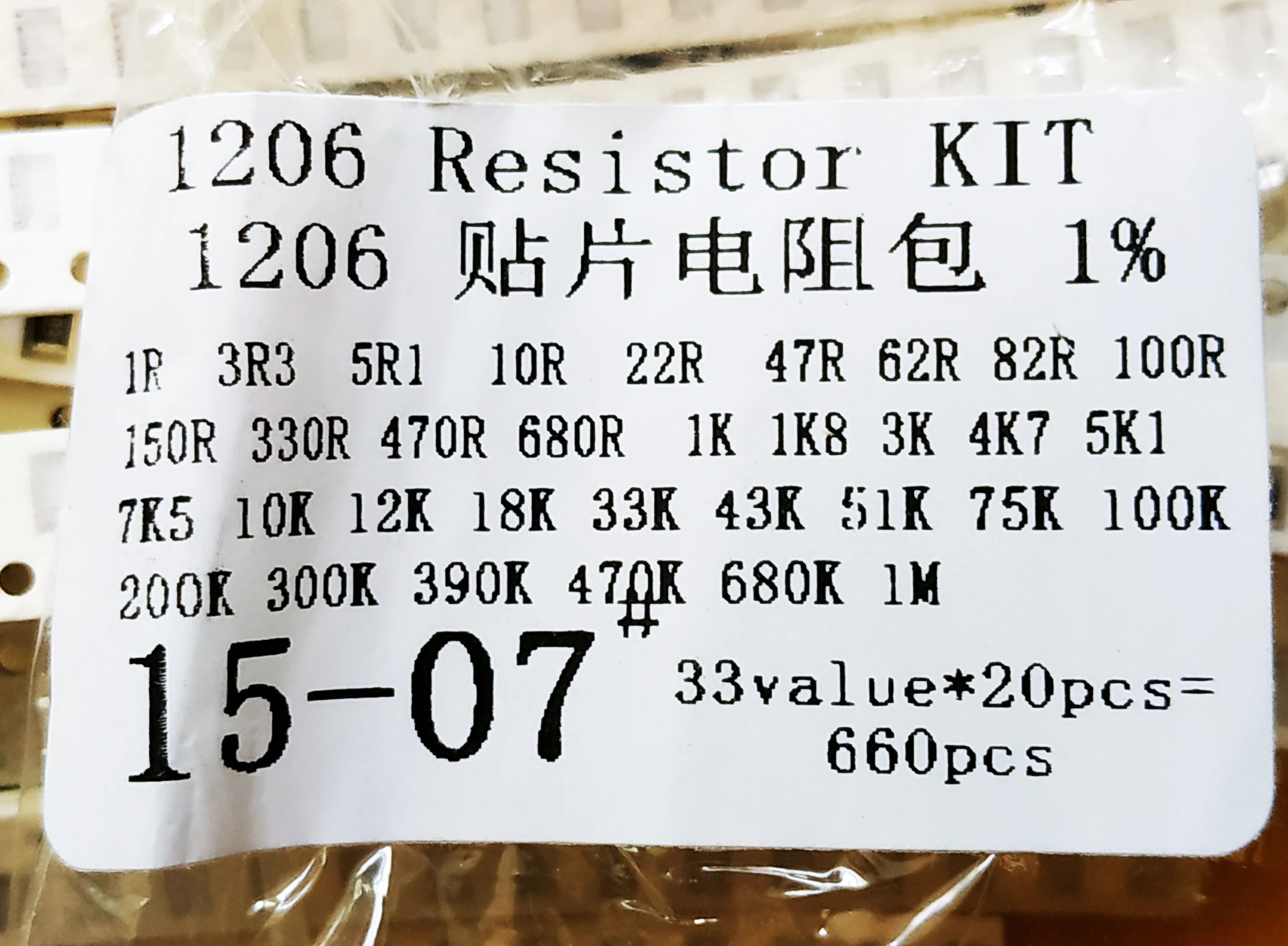 Комплект резисторов 1206 SMD в ассортименте, 1 Ом-1М Ом, 1%, 33 значения, 20 шт. = 660 шт., набор образцов, электронные компоненты