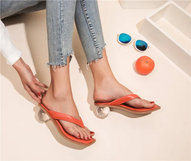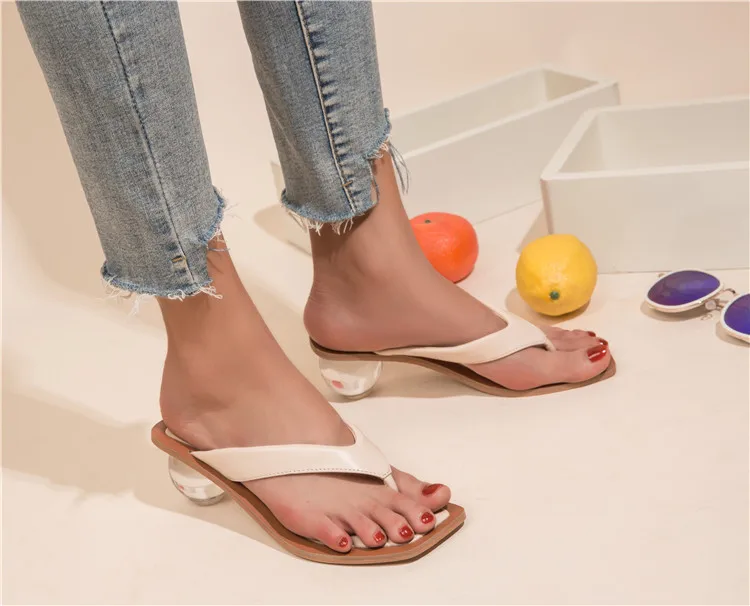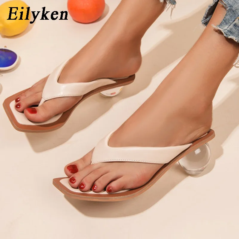 Eilykenмодные дизайнерские Вьетнамки; Шлепанцы; Высокое качество; Каблук из плексигласа; Летние женские босоножки с круглым носком, украшенные кристаллами