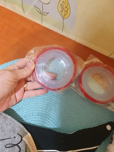 Лента разделена на 2 кусочка по 1 м, что уже не очень удобно. Я хотела на угол стены приклеить. теперь это 2 кусочка. лента скручена в круг и когда ее раскрыла , она неровная, может вытянется или растягивать может ее надо перед использованием, не знаю. Клеевой слой отдельно от ленты... возможно это для кого-то хорошо, а мне , девушке это не удобно.