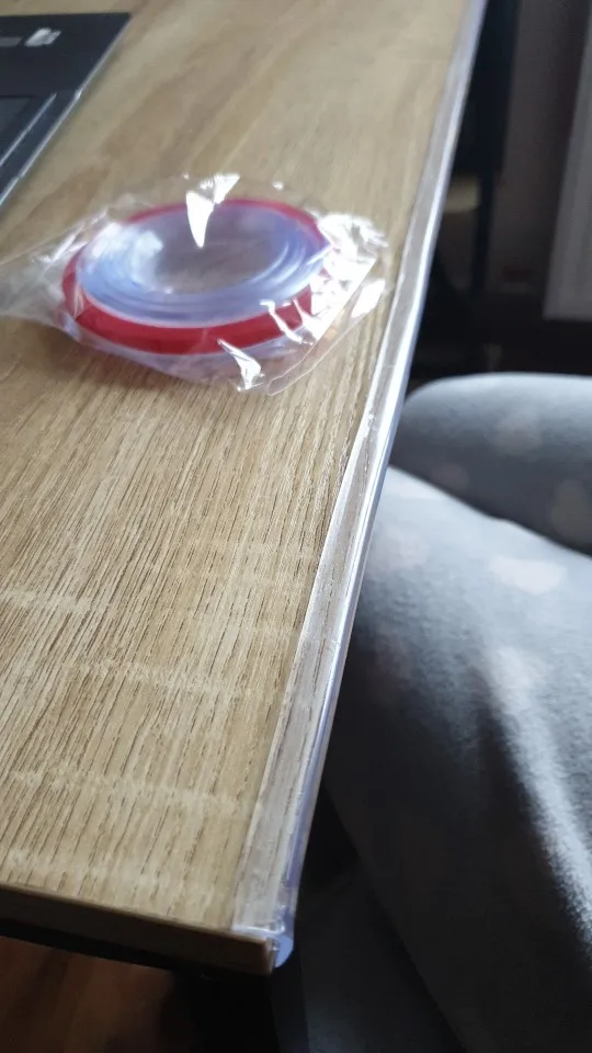 Лента прозрачная и скотч прозрачный, практически не видна на мебели и не портит внешний вид. Изначально свёрнута в кольцо но выпрямляется довольно легко. Посмотрим как долго продержится на мебели. Доставили через Сдэк.
