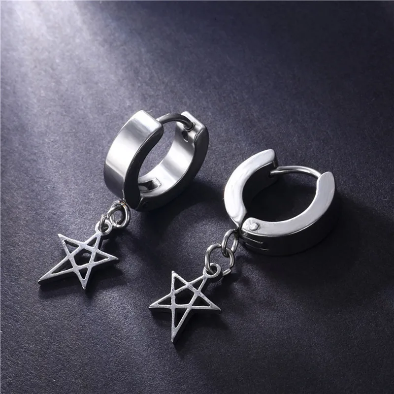 Серьги-гвоздики мужские из нержавеющей стали, 1 пара, корейский стиль kpop, черные, в стиле панк-рок, асимметричные украшения