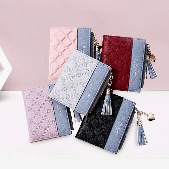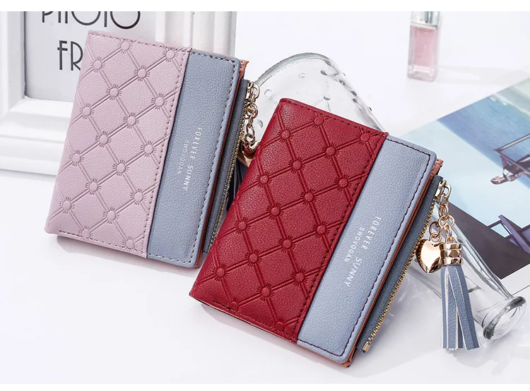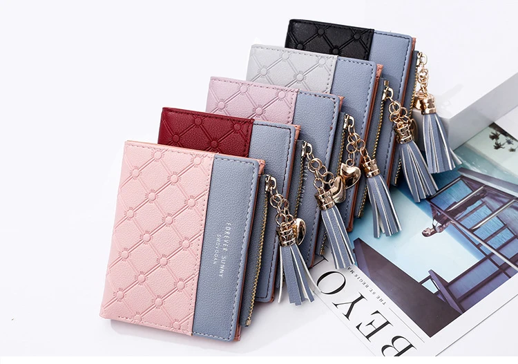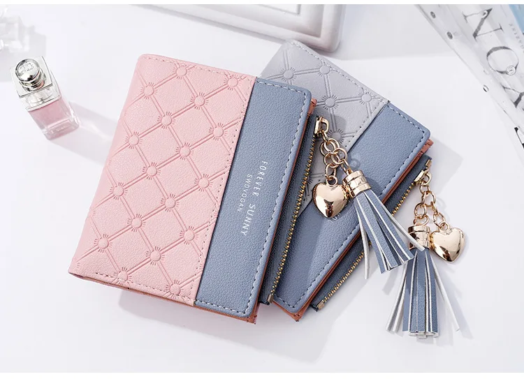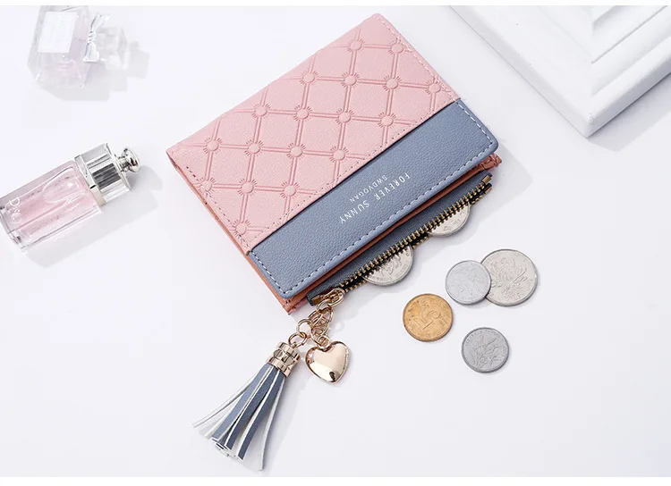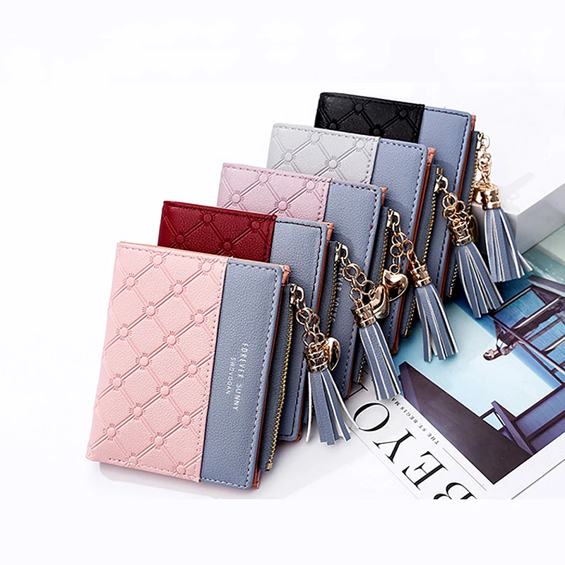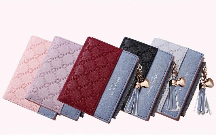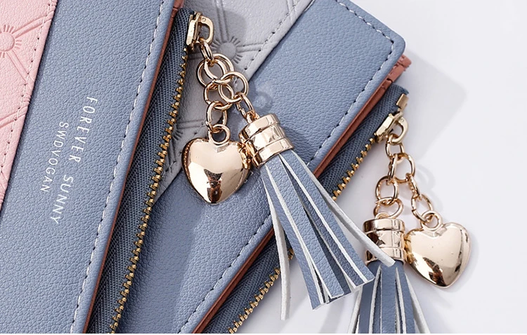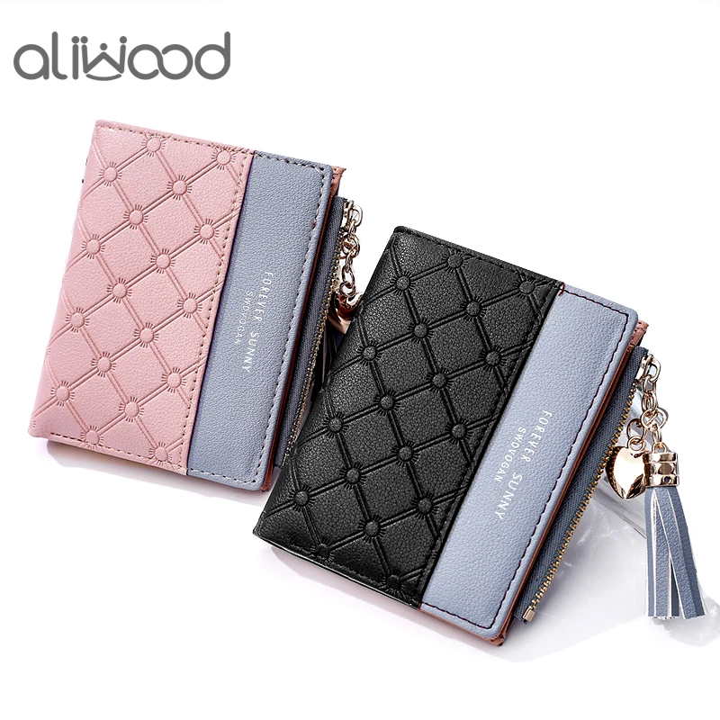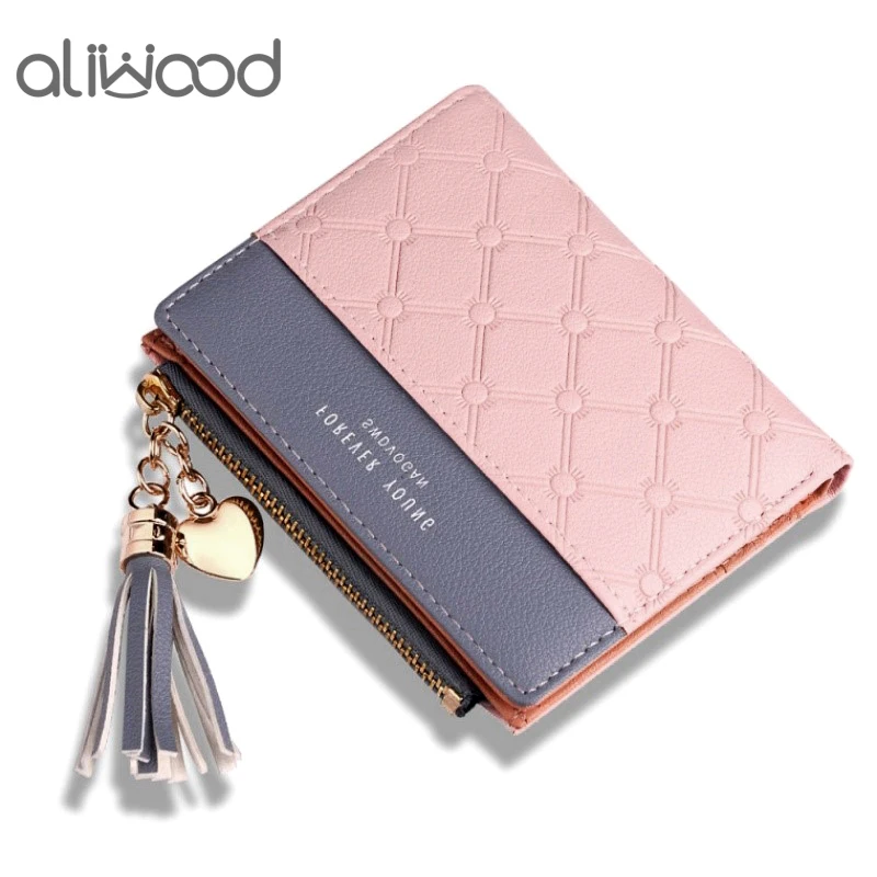 Новый женский кошелек aliwood с тиснением, женские кошельки с цепочкой и кисточкой, элегантные женские кошельки с подвеской в виде сердца, кошельки на молнии, держатель для карт