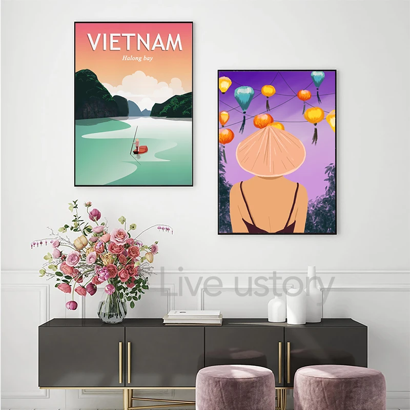 Винтажный постер из Вьетнама на холсте галонг-Бэй, живопись, пейзаж для путешествий, художественная живопись, Настенная картина, домашний декор, идея подарка путешественника
