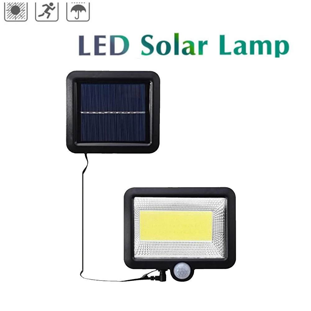 100 COB светодиодный светильник на солнечной батарее, уличный садовый светильник на лужайке, настенный светильник с пассивным инфракрасным датчиком движения, светильник с разделенной солнечной панелью, кабель 5 метров