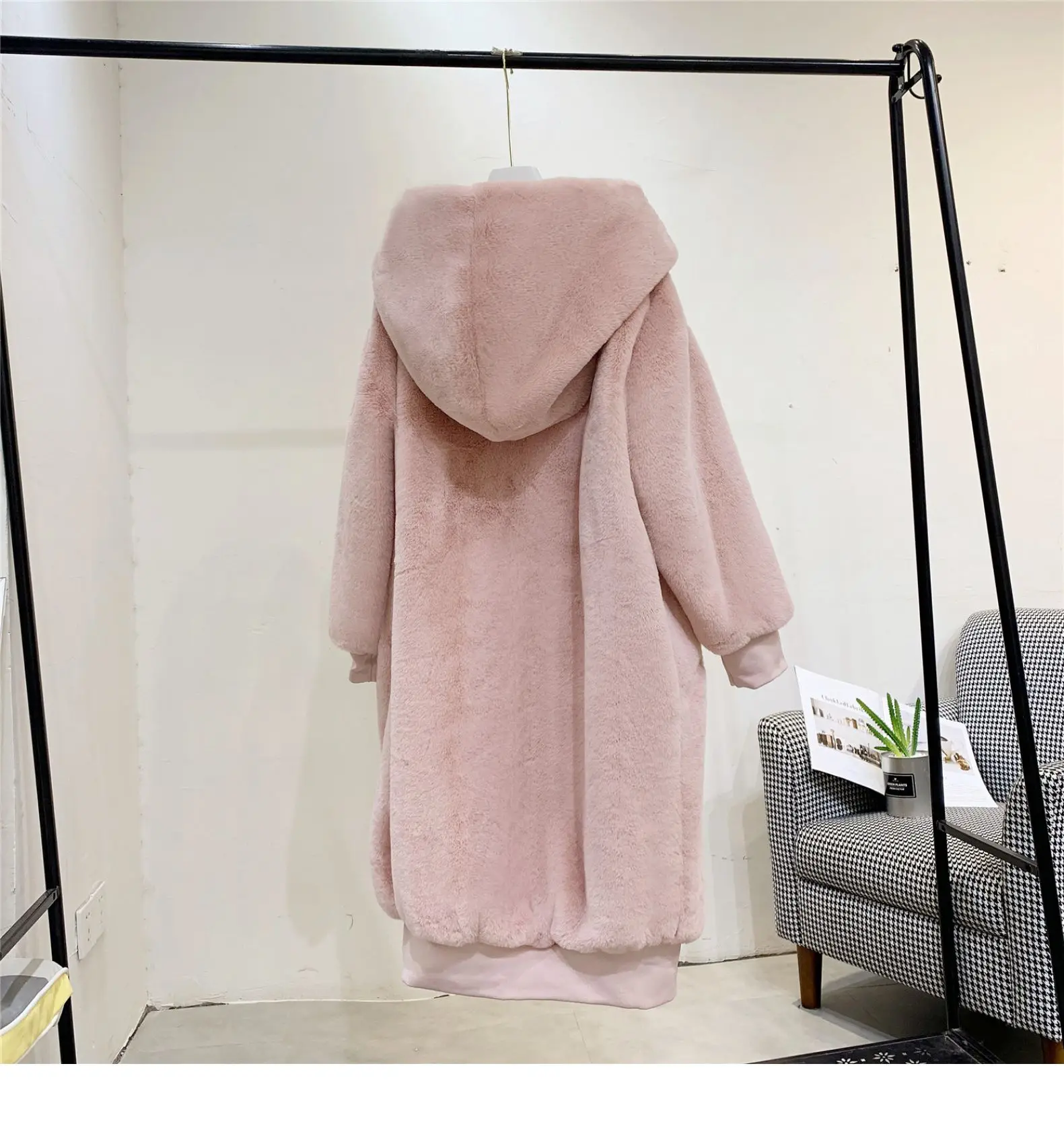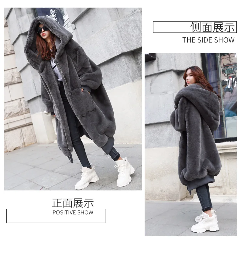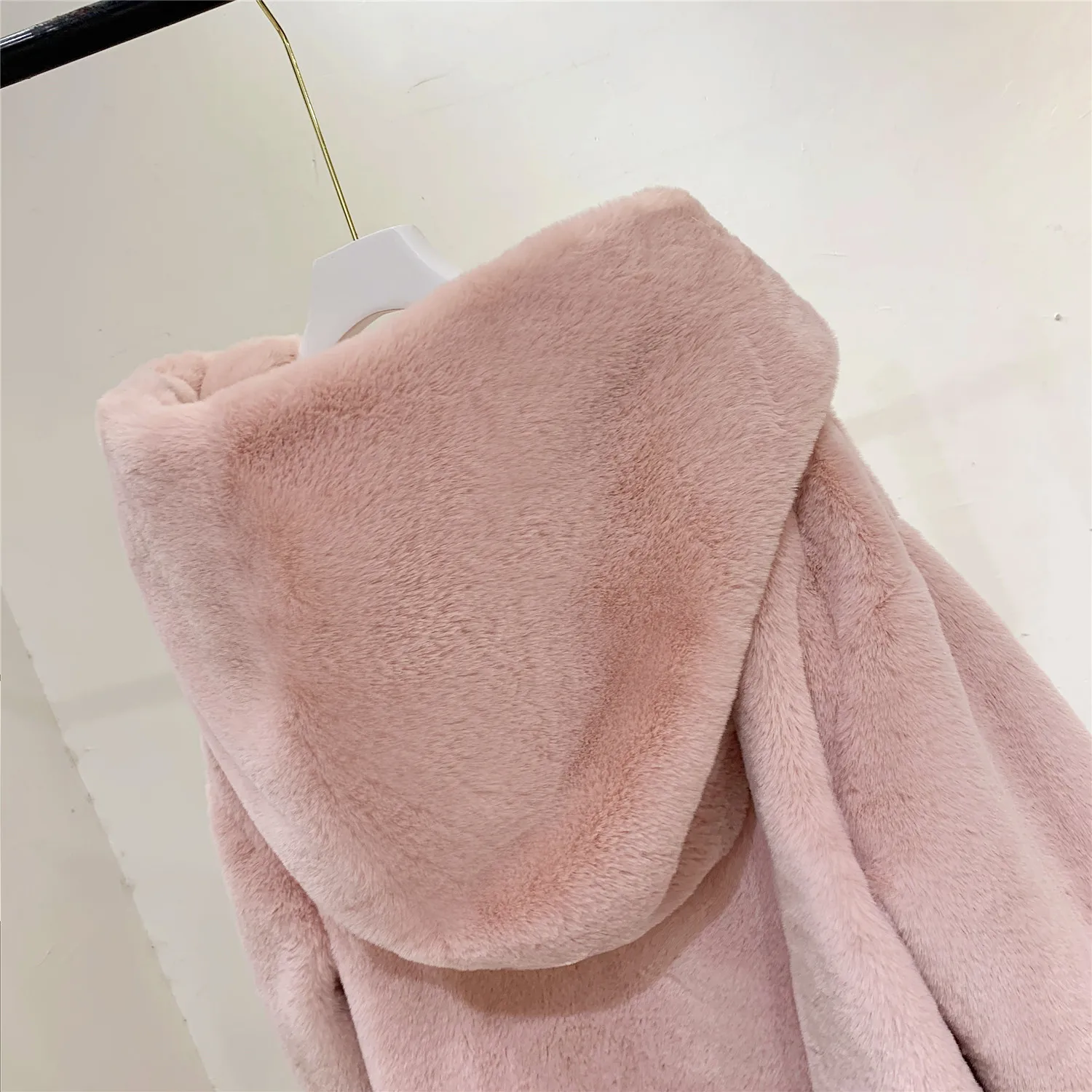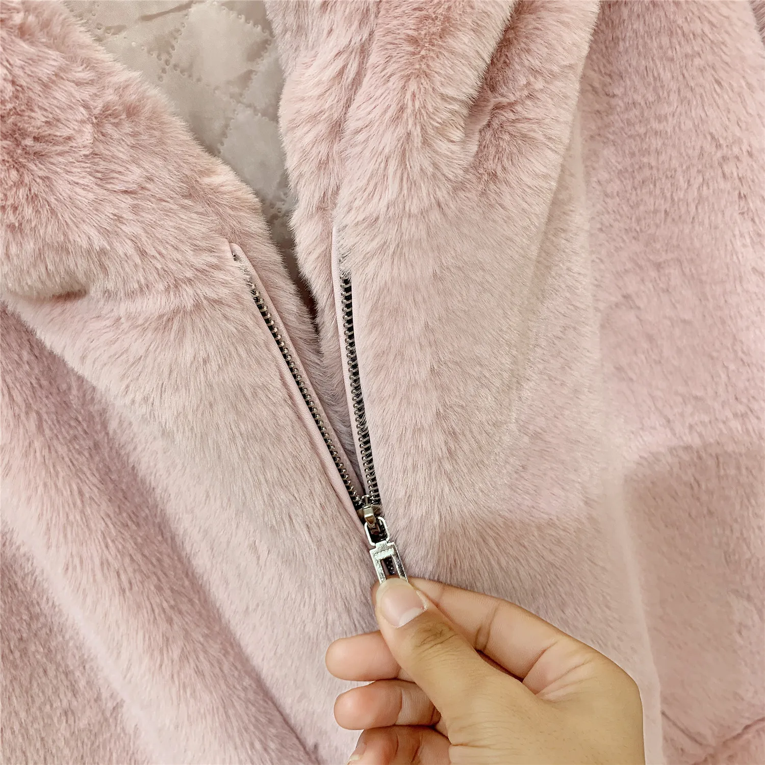 Пальто из искусственного меха для женщин, зимнее пальто оверсайз, плотное теплое плюшевое пальто, женская куртка с большим капюшоном из искусственного меха, женское розовое плюшевое пальто на молнии