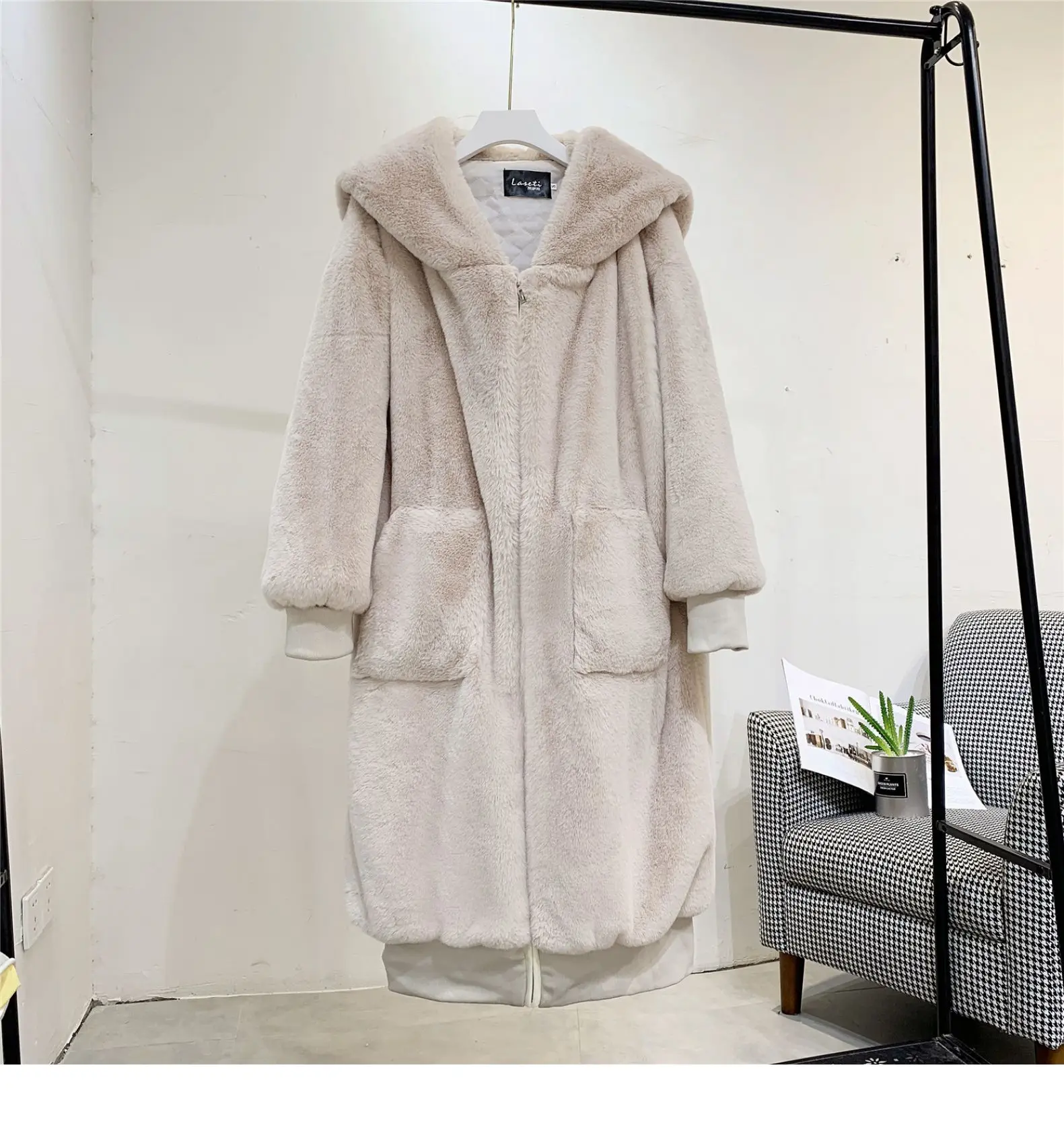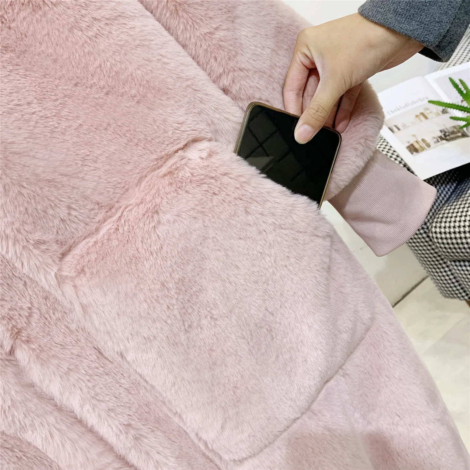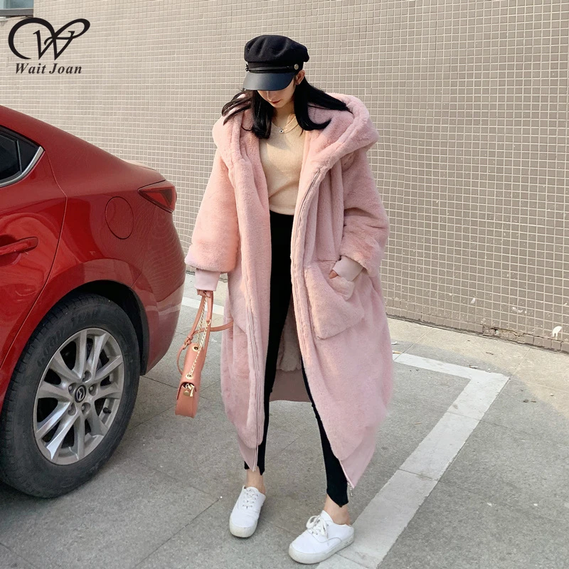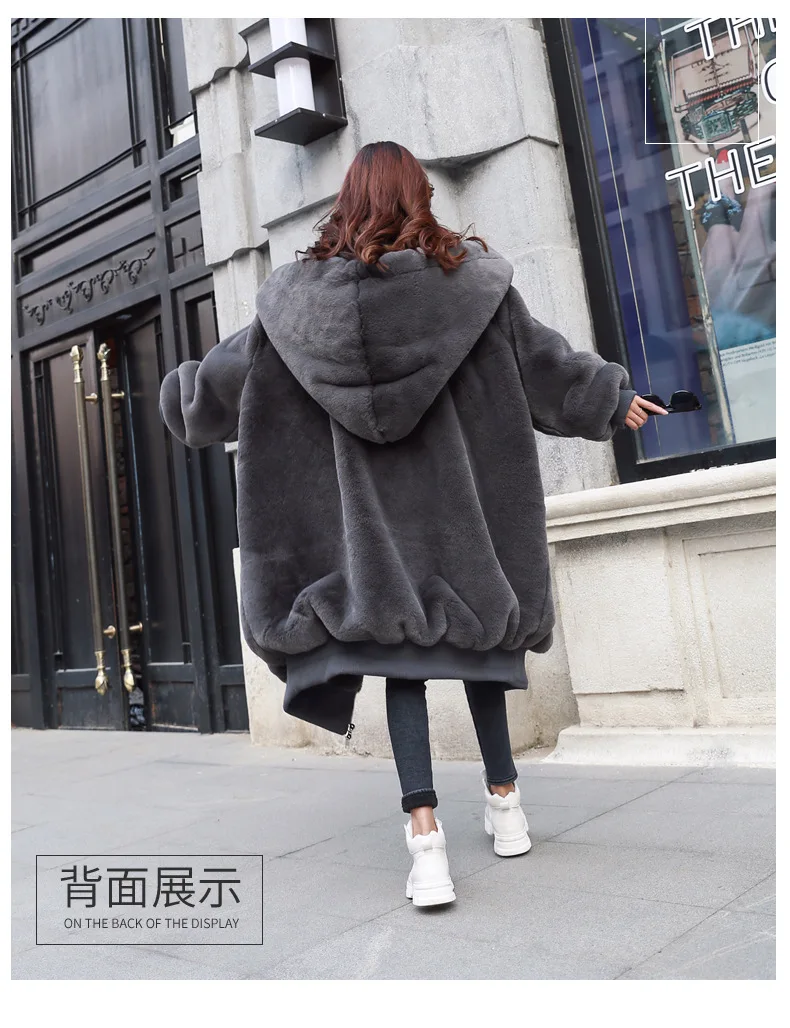 Пальто из искусственного меха для женщин, зимнее пальто оверсайз, плотное теплое плюшевое пальто, женская куртка с большим капюшоном из искусственного меха, женское розовое плюшевое пальто на молнии