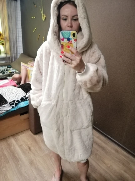 ну... начнем: шубка клёвая, но ОЧЕНЬ жаль что нет размера больше хотя бы 2хл,на ог120 села комфортно и даже длина на рост 1.76 меня устраивает,а вот рукова короткие, буду думать как исправить, капюшон большой;девочкам меньшего роста и меньшего размера (я ношу 50-52) будет как на модели с фото продавца.В целом я довольна, однозначно носить буду и РЕКОМЕНДУЮ к покупке, спасибо продавцу и процветания магазину!!! доставка быстрая!