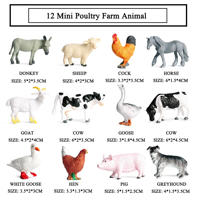 Имитация птицы, животные, свинья, корова, курица, 12 шт.компл., мал...