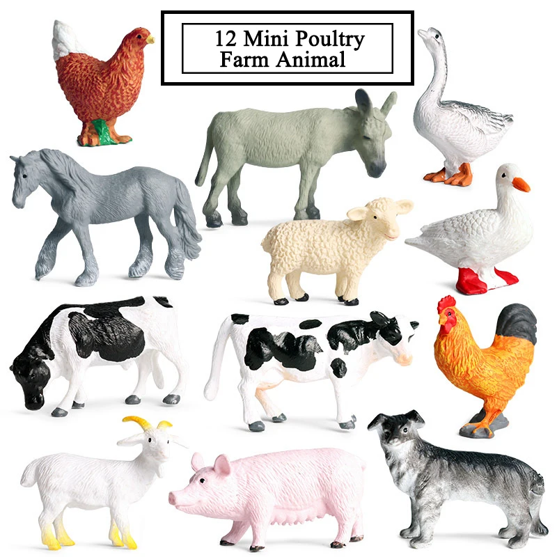 Имитация Птицы Животные СВИНЬЯ Корова курица 12 шт./компл. маленький размер ПВХ модель миниатюрная ферма петух Гусь Фигурки игрушки для детей подарок