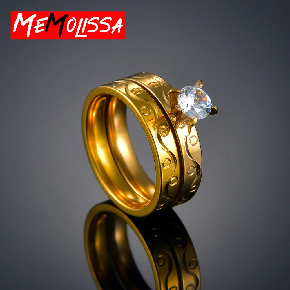 MeMolissa 2 шт. набор золотых обручальных колец заполненные кристал...