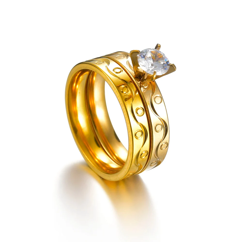 2 шт.компл. золото Цвет Циркон нержавеющая сталь CZ кольцо обручаль...