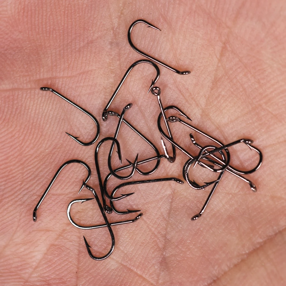 ICERIO 30 шт. черная никелевая отделка Высокоуглеродистая сталь классический сухой крючок для вязания нахлыстом Стандартный колючий крючок для ловли форели
